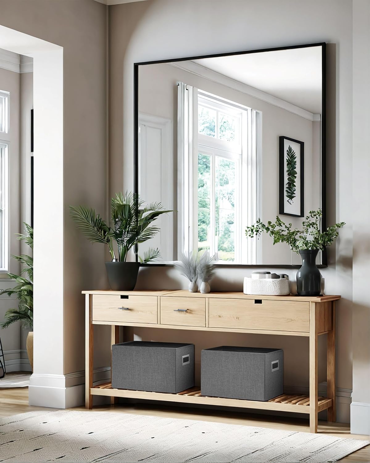 - Elegant Design: Crafted with a beautiful faux linen exterior and sleek cut-out handles for a clean, modern look. Stylish and practical large storage baskets for any home décor.