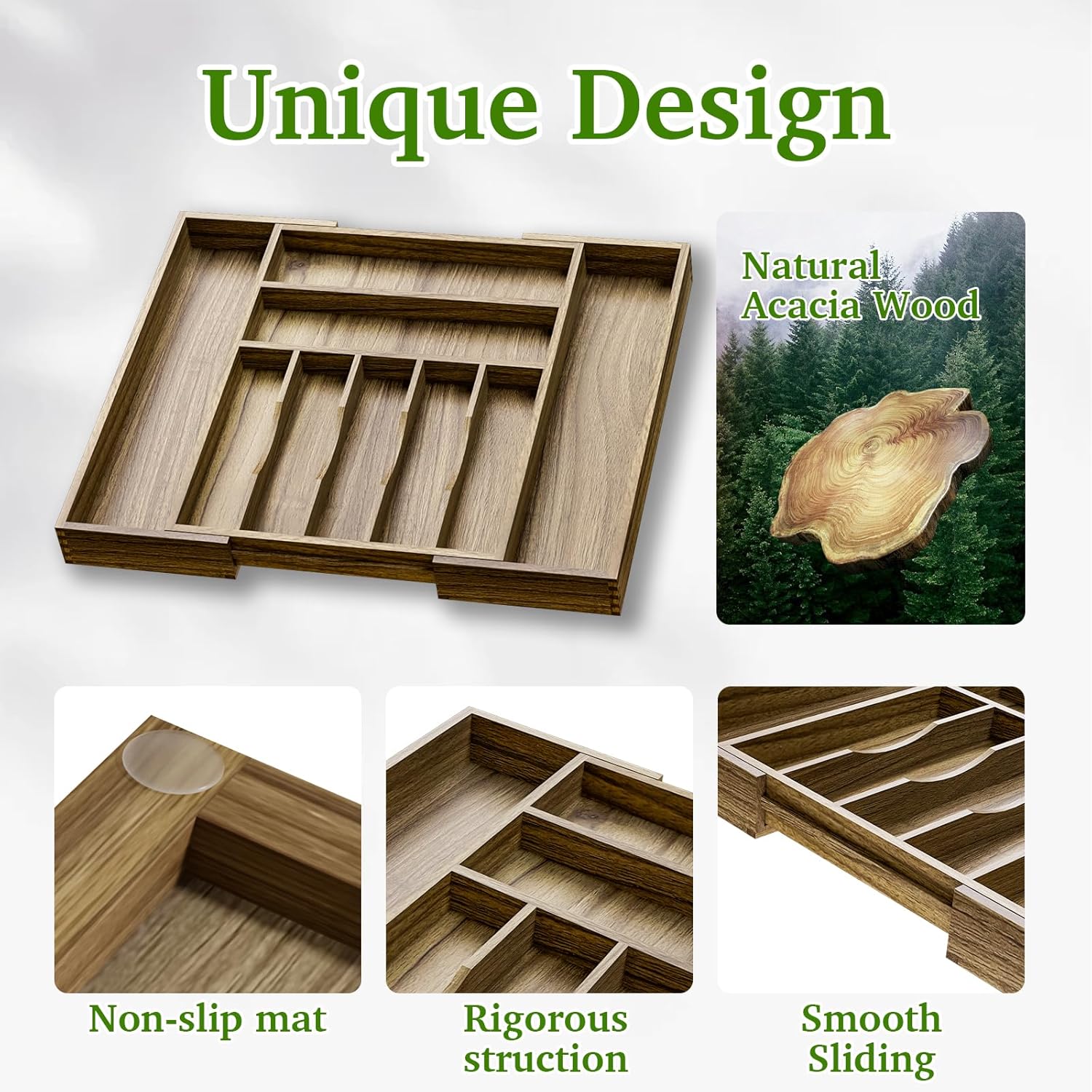 - ๐๐๐ญ๐ฎ๐ซ๐๐ฅ ๐๐๐๐๐ข๐ ๐๐จ๐จ๐-Made of acacia wood, this silverware drawer organizer is very attractive, well made and easy to clean. More resistant than plastic and other materials. The color of natural wood is so beautiful and rich.