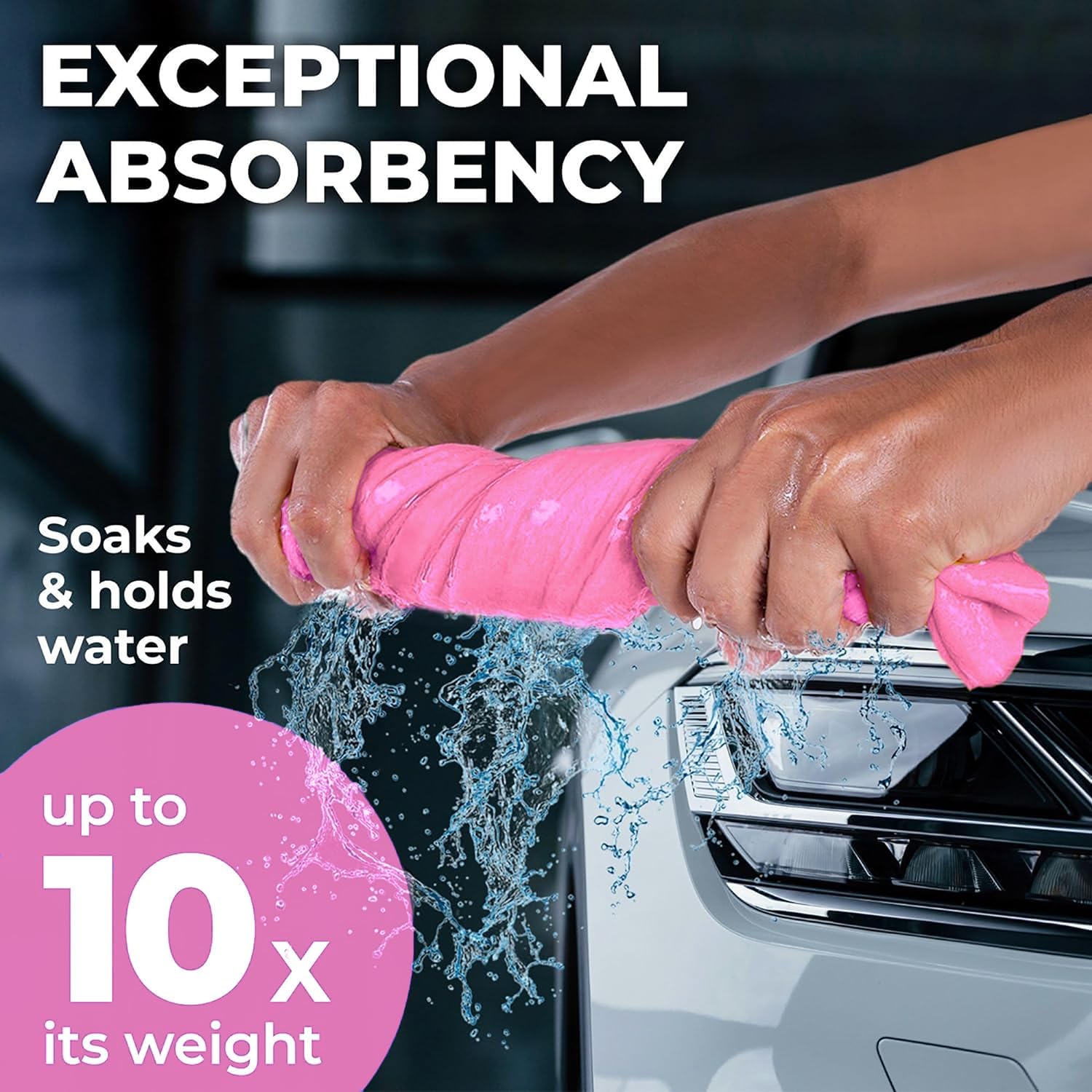- EXCEPTIONAL ABSORBENCY — The Mighty Cleaner chamois towel for car works like a charm soaking up and holding as much as 10 times its weight in water. Our shammy cloth for car drying is like having a sponge and a towel in one.