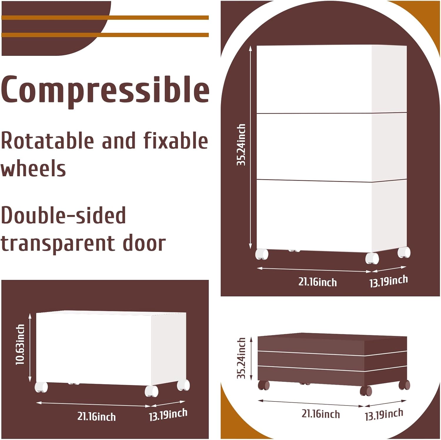 - Flexible and Convenient Design: The double-opening transparent door can be entered from the front and back, which is convenient for viewing and taking items, and is suitable for any space. The cabinet can be folded and has wheels for convenient storage and transportation, which enhances practicality.