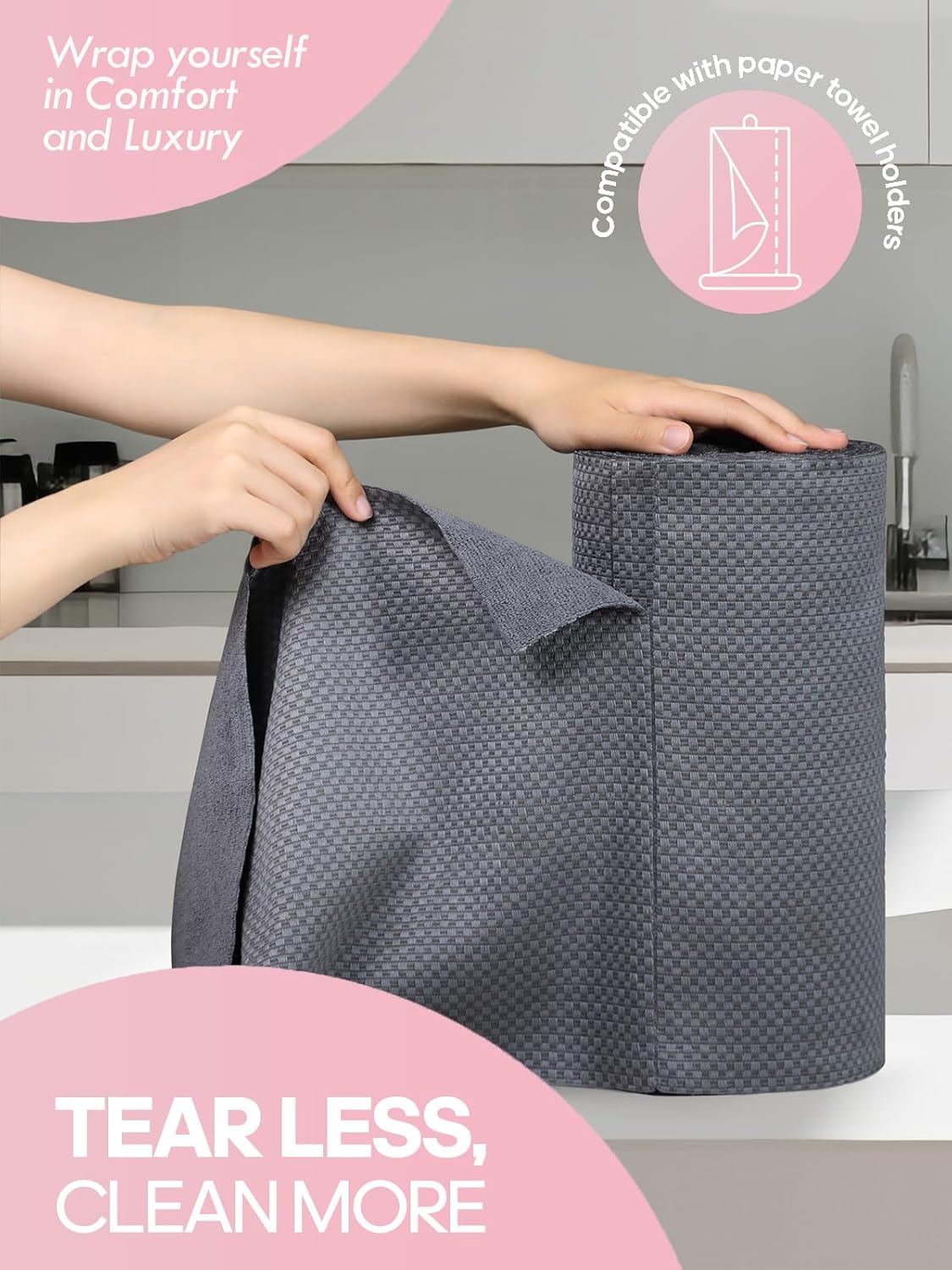 - [Larger & Thicker Paperless Towels] Dual-sided 18'' by 12'' towel design, bring both elegance and effective cleaning results to daily household need, adding style to your kitchen and function and personality to your home