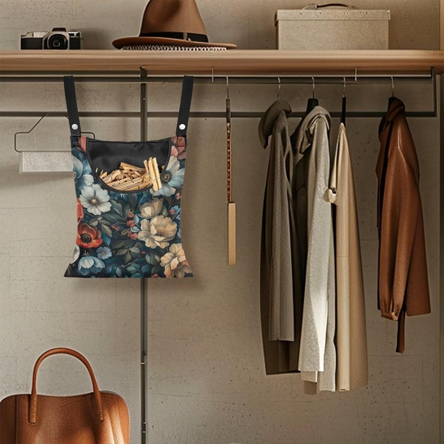 Art Flowers Clothes Pin Bags Clothespin Bag Holder Clothespin Holder 14.5 x 12 Inch Clothespin Bag for Clothesline Outdoor Outside Laundry Room Lightweight Clothespin Bag for Easy Hang, CZB94