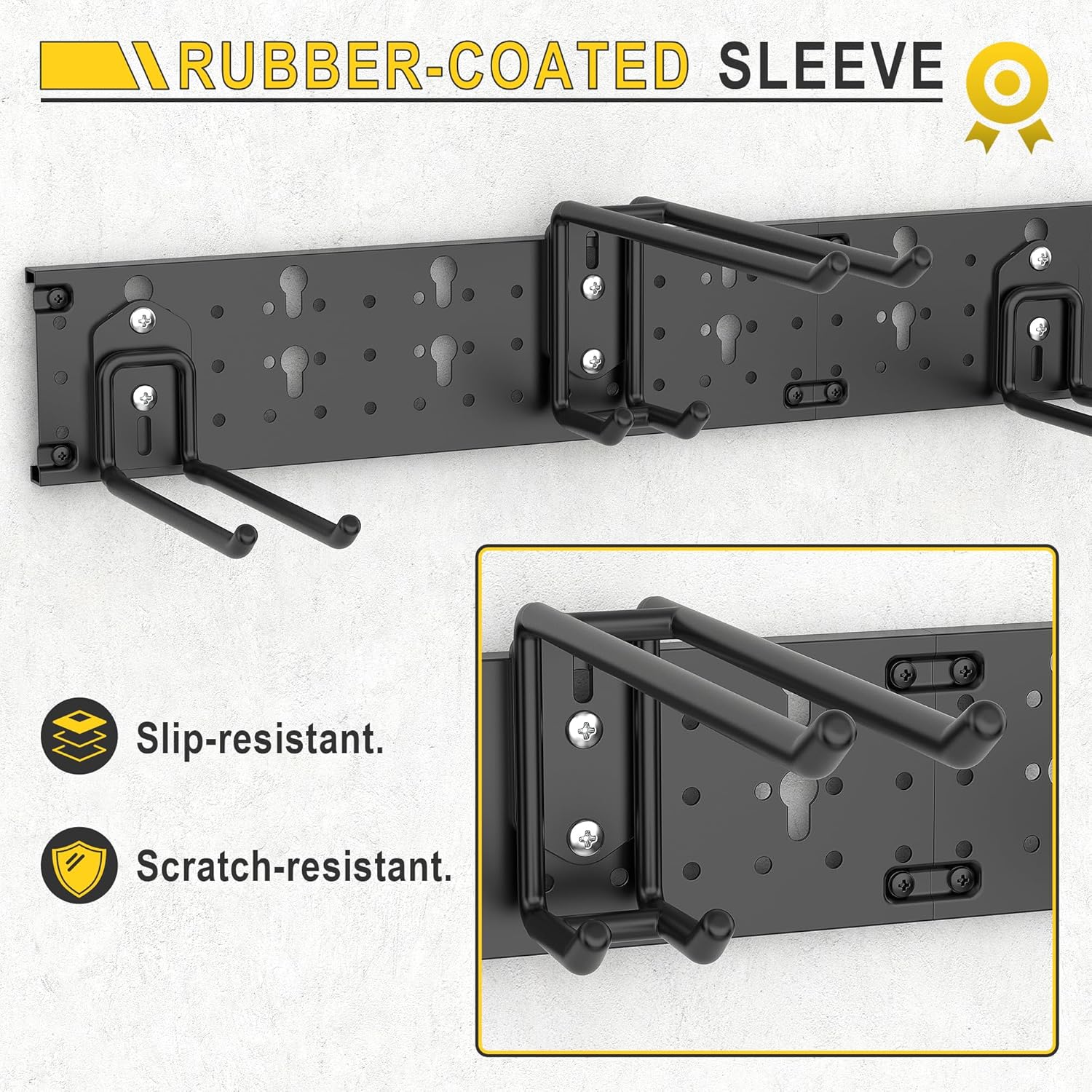 - Pegboard Hooks Compatible Design—The rails come equipped with holes for the included hooks and additional 1/8" pegboard hook holes (pegboard hooks not included). This thoughtful design maximizes rail space, providing optimal storage efficiency.