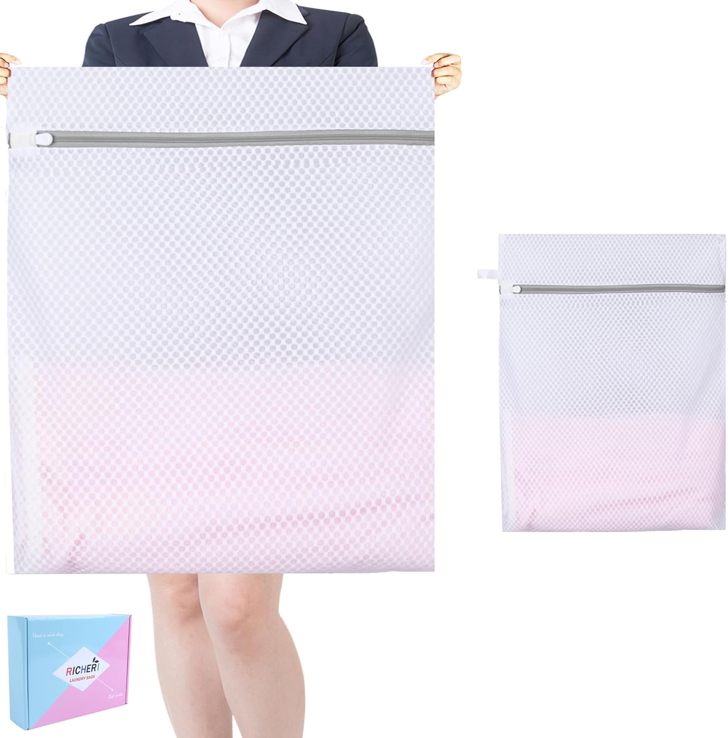 Mesh Laundry Bags, Mesh Wash Bags, Durable Mesh Structure with Strong Zipper, Suitable for Underwear, Delicate Clothes, Pants, Shoes, Socks Washing (Honey mesh, Extra Large 24*36in+36*44in)