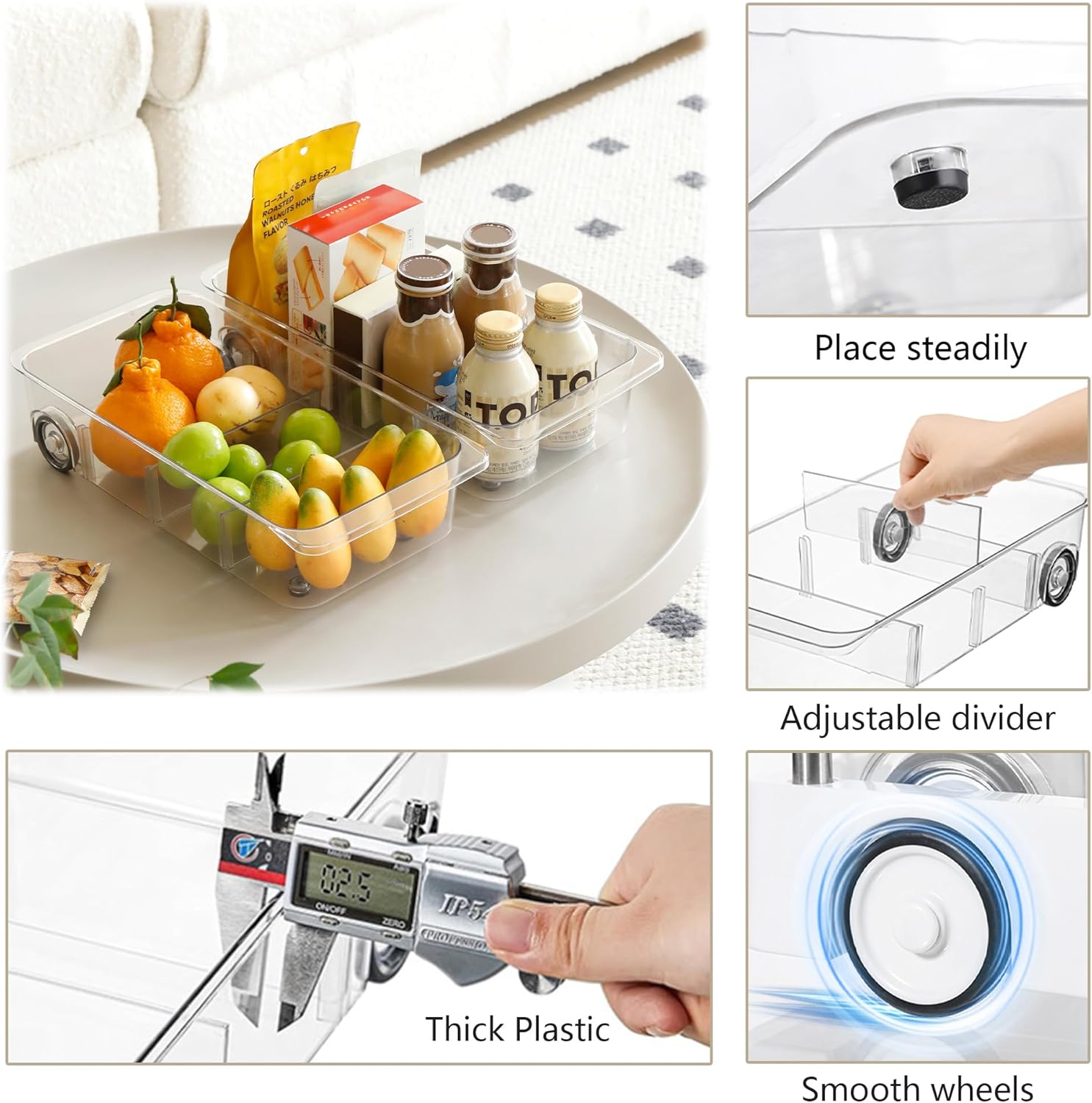 - With Big Wheels: The wheels of our refrigerator organizers and storage are made of silicone instead of hard plastic and will roll well on the glass shelf. Easily take out items from deep cabinets or the back of the refrigerator
