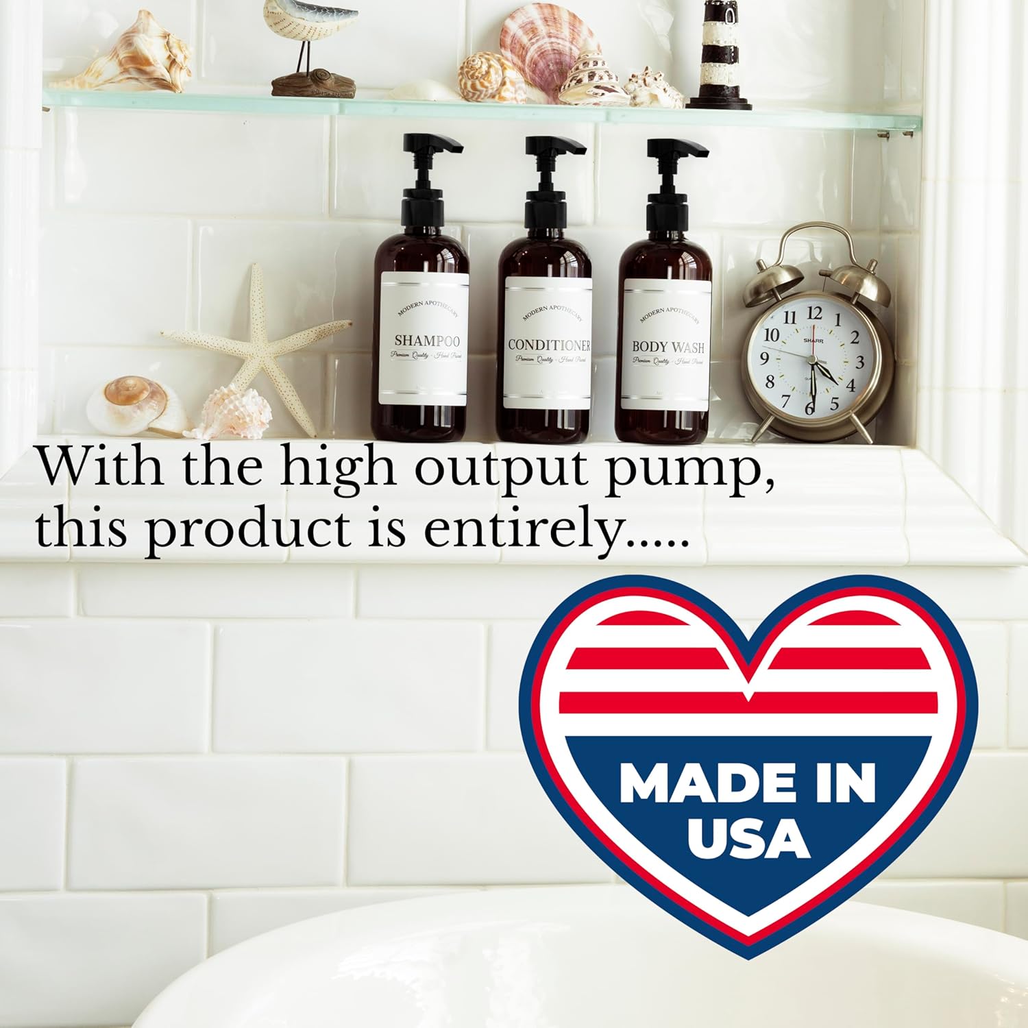 - Bring Style To Your Bathroom: Revel in the luxury of a well-organized shower. Refine your interior decor with these chic body wash, conditioner and shampoo dispenser bottles. Curate your whole home. Modern Apothecary bathroom bottles coordinate with additional matching titles for the sink, kitchen, office, and rentals. Classy, with a touch of retro flair