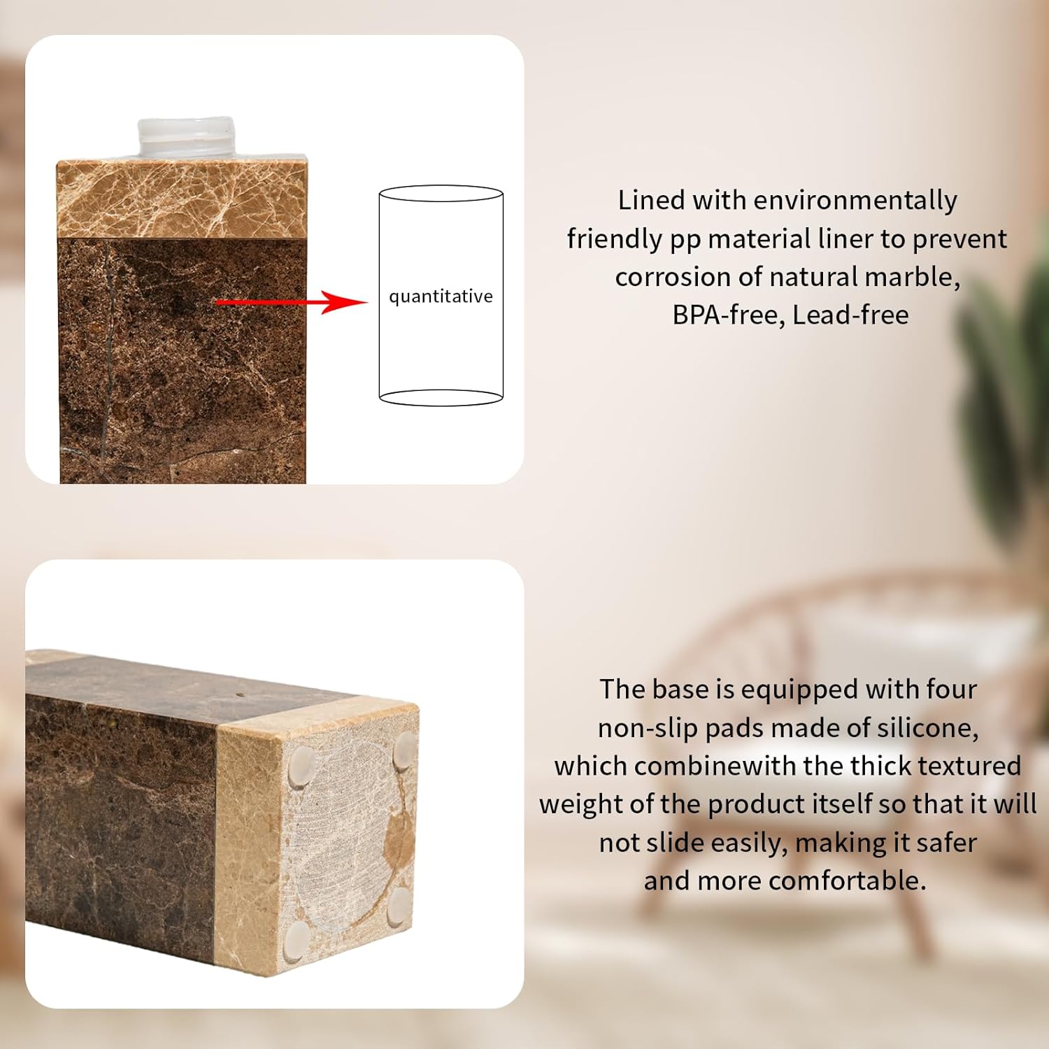 - 【Usage Scenarios】: Versatile and adaptable, our marble soap dispenser enhances any space, whether it's adorning kitchen countertops, bathroom vanities, laundry rooms, or any other desired location