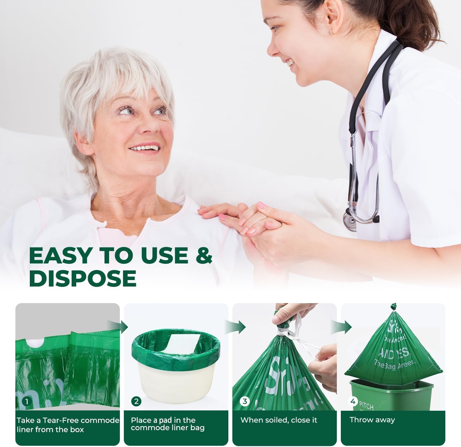 - VALUE PACK &SMILE LINERS: Contains 30 bedside commode liners and 30 super absorbent pads, offering convenience and efficiency for easy clean up. Our disposable potty liners feature a pull-out design with built-in pads for quick use, preventing dust and contamination. Our commode liners disposable printed with "Smile You're Awesome! AND YES, The Bag Agrees" for a joyful touch