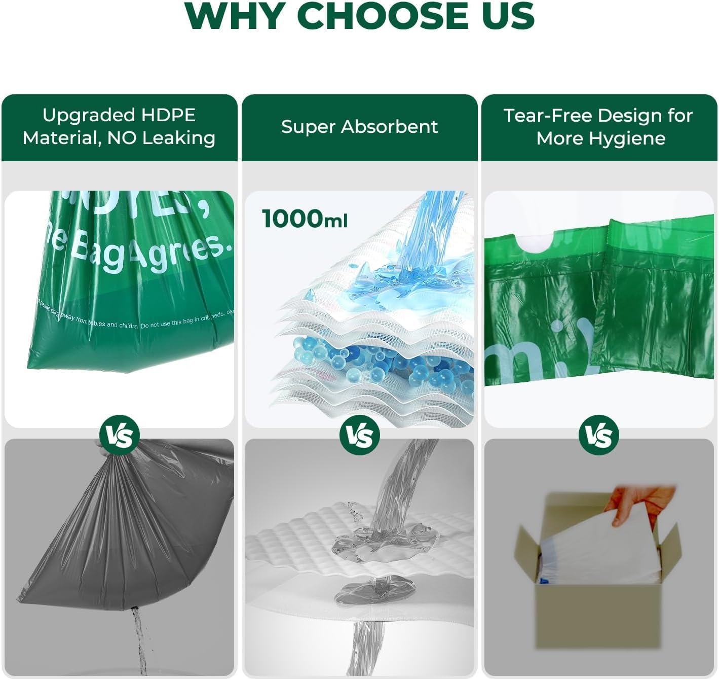 - VALUE PACK &SMILE LINERS: Contains 120 bedside commode liners and 120 super absorbent pads, offering convenience and efficiency for easy clean up. Our disposable potty liners feature a pull-out design with built-in pads for quick use, preventing dust and contamination. Our commode liners disposable printed with "Smile You're Awesome! AND YES, The Bag Agrees" for a joyful touch