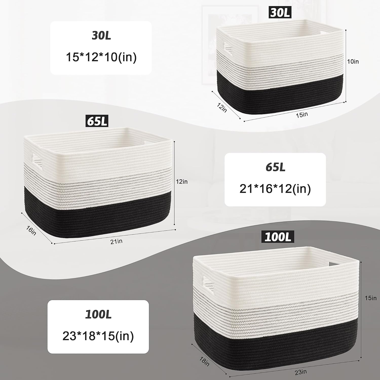 Blanket Basket,Rectangle Woven Baskets for Storage,100L Laundry Basket for Decorative Nursery Blanket,Toys,Dirty Clothes and Magazine in Shelves,Baby Room,and Living Room