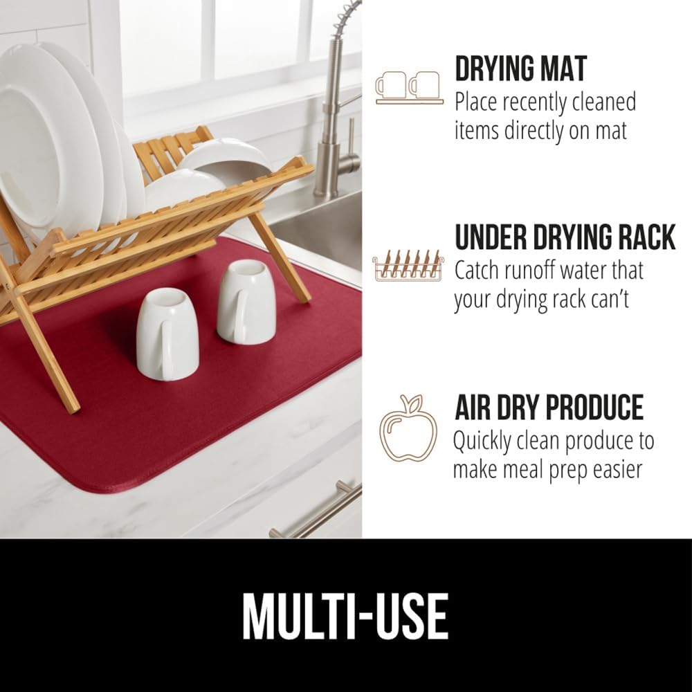 GORILLA GRIP Ultra Water Absorbent Microfiber Dish Drying Mat, 18x24, Quick Dry Thick Mesh, Slip Resistant Pad for Sink Dishes or Under Rack, Kitchen Counter Accessories, Machine Wash Mats, Red