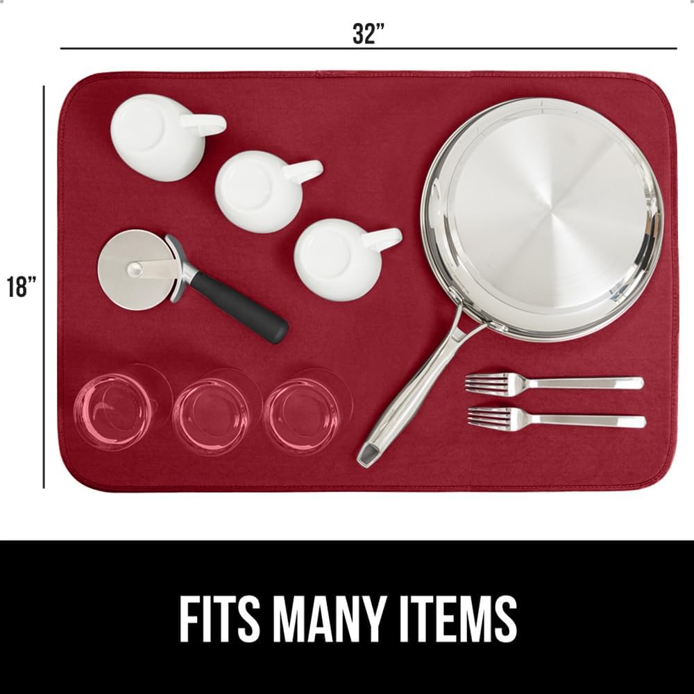 GORILLA GRIP Ultra Water Absorbent Microfiber Dish Drying Mat, 18x32, Quick Dry Thick Mesh, Slip Resistant Pad for Sink Dishes or Under Rack, Kitchen Counter Accessories, Machine Wash Mats, Red