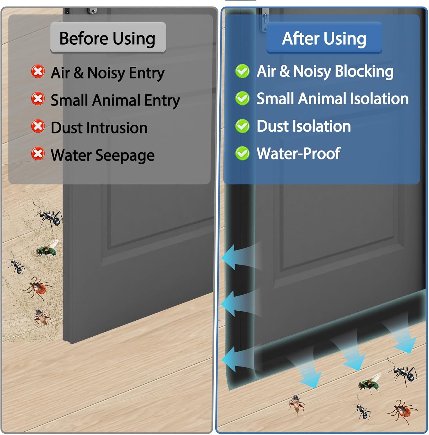 - Wide Applications: Suitable for homes, apartments, offices, garages, and even RVs. These door bottom seal strips create a tighter seal around or under your doors. They're ideal for reducing noise levels while enhancing protection to create a more comfortable living or working environment.