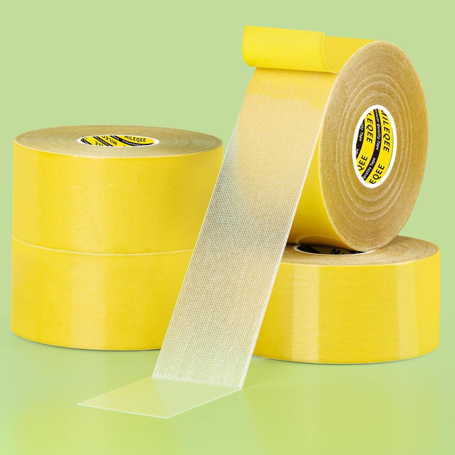 4Pack Double Sided Tape Heavy Duty, 2in x 66FT (264FT Total), Super Sticky Resistente Clear Tape, Universal High Tack Strong Wall Adhesive with Fiberglass Mesh,Easy Use Mounting Tape