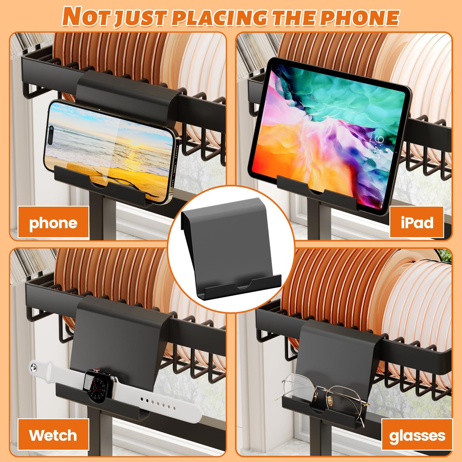 - A smart way to organize your kitchen sink area and save space in your cabinets simultaneously by installing a dish rack over your sink. Special compartments and space for dishware, cooking ware and silverware make it easy to air dry everything at once; This well-designed sink dish rack makes use of vertical space to add enormous capacity to a typical dish rack, with space for silverware, mugs, pans, and most other kitchenware item, is the ideal choice of dish rack for the household!