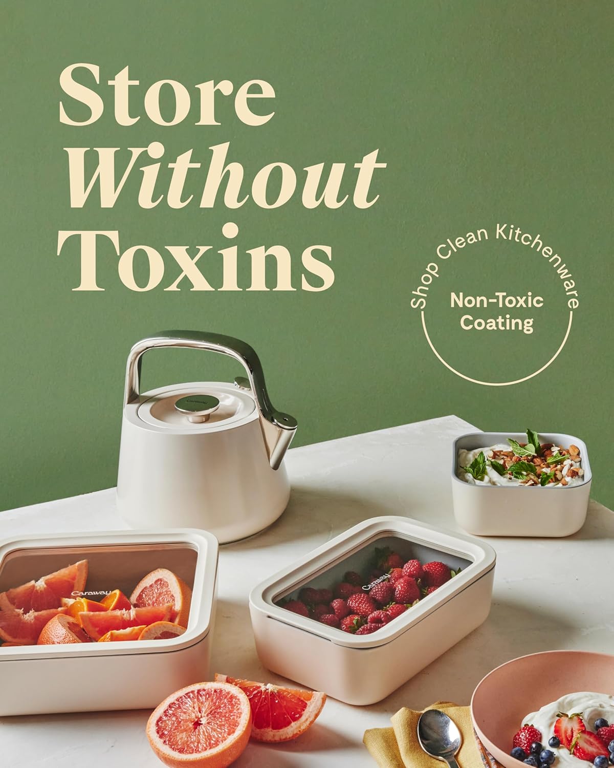 - BEAUTIFULLY DESIGNED: The cleanest, best-looking approach to storing your food. Our glass container features a clear glass lid for easy viewing Each container comes in modern colors that will match with your entire Caraway collection.