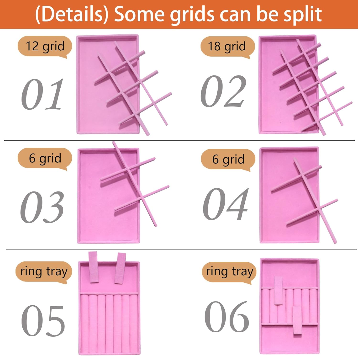 - Adjustable Dividers and Stackable Design: Provided with removable grids, easy to remove to fit for your different size jewelry. Our jewelry trays can be stacked. Keep your jewelry organized and easily accessible