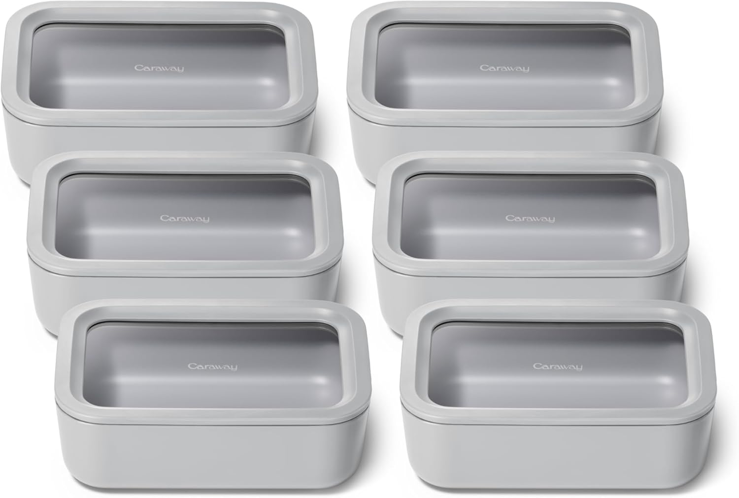 - MEAL PREP BUNDLE: Your weekly meal prep made easy with Caraway’s easy-to-store, non-toxic food storage containers. This set includes 6 medium containers featuring non-toxic, non-stick, ceramic-coated glass, this durable container makes prepping, storing, and serving easier than ever.