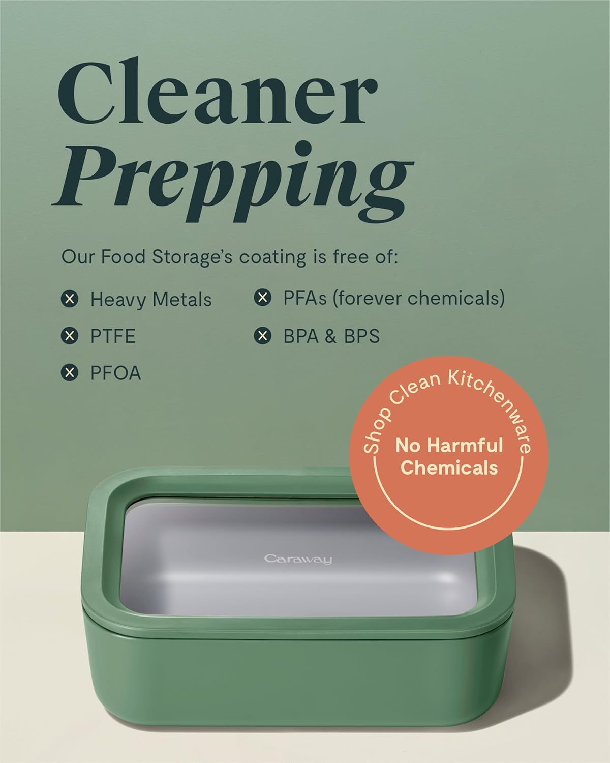 - MEAL PREP BUNDLE: Your weekly meal prep made easy with Caraway’s easy-to-store, non-toxic food storage containers. This set includes 6 medium containers featuring non-toxic, non-stick, ceramic-coated glass, this durable container makes prepping, storing, and serving easier than ever.