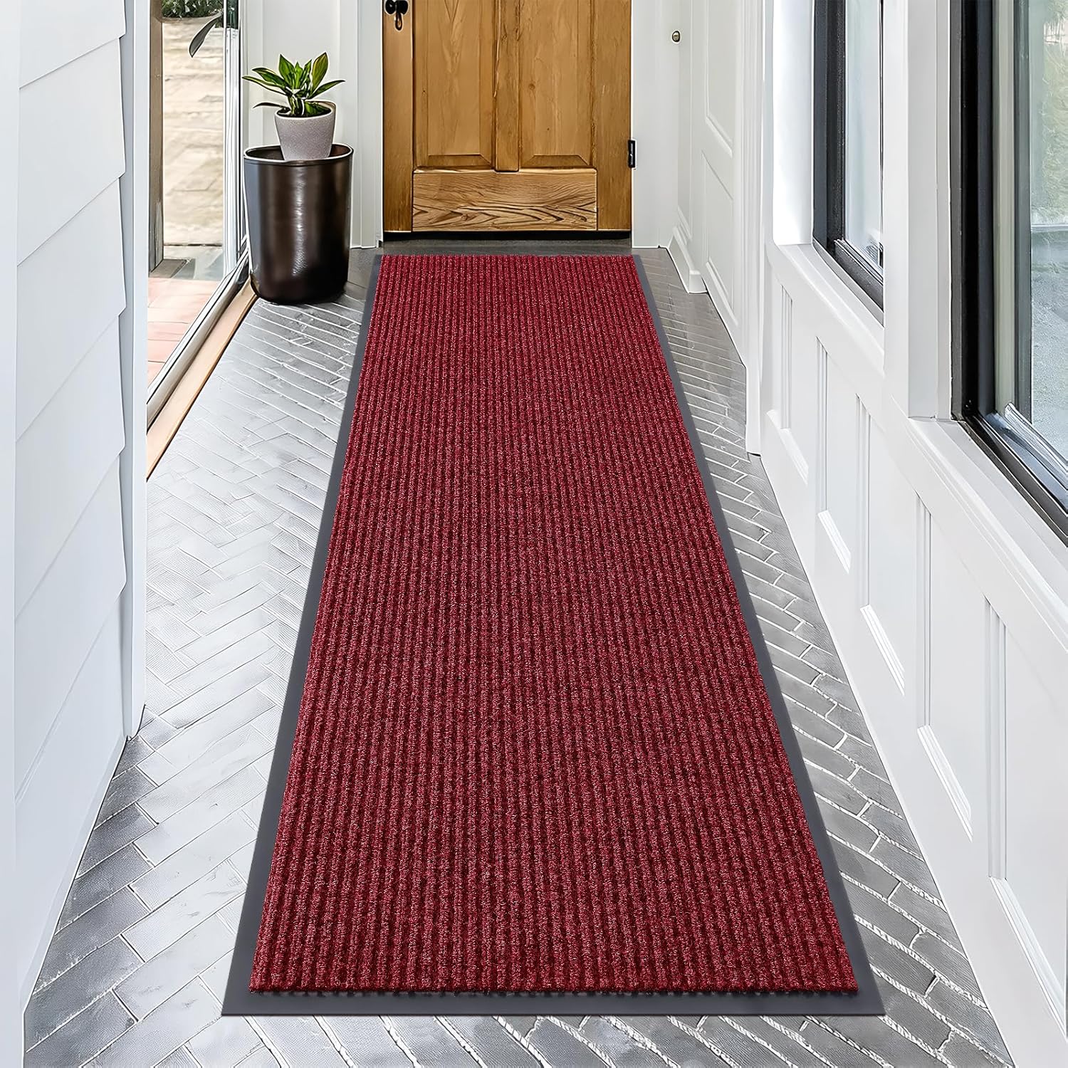 OLANLY Front Door Mat Indoor Outdoor Entrance, Waterproof Heavy Duty Doormat, Fade Resistant, Low Profile, Easy Clean Patio Porch Welcome Floor Mats for Entry, 71x24, Wine Red