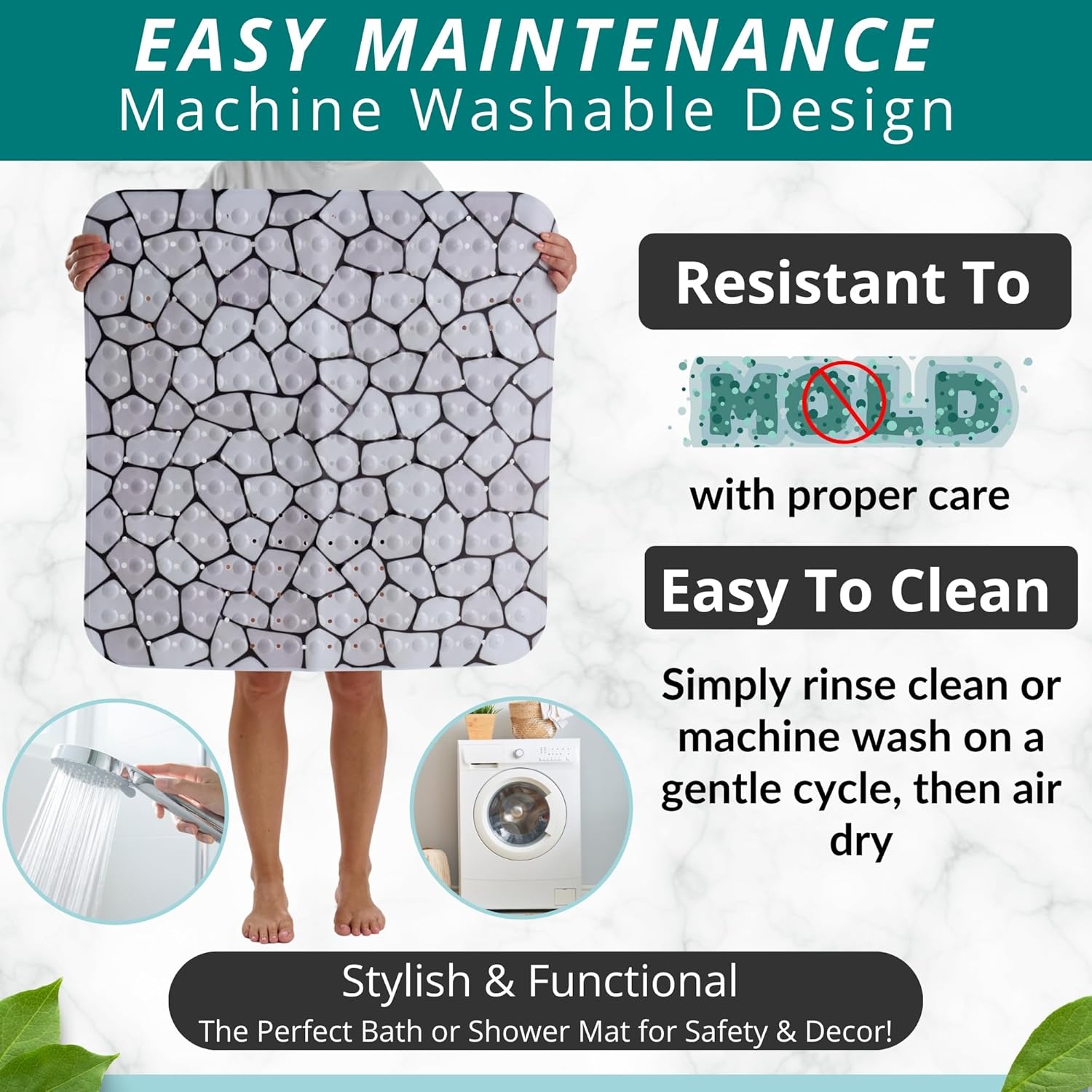 ENKOSI Extra Large Square Non Slip Shower Mat - 31 x 31-inch XL Bathroom Shower Mat - Square Shower Matts for Shower Stall Floors | Secure Suction Cups and Drain Holes (31x31 Pebble)