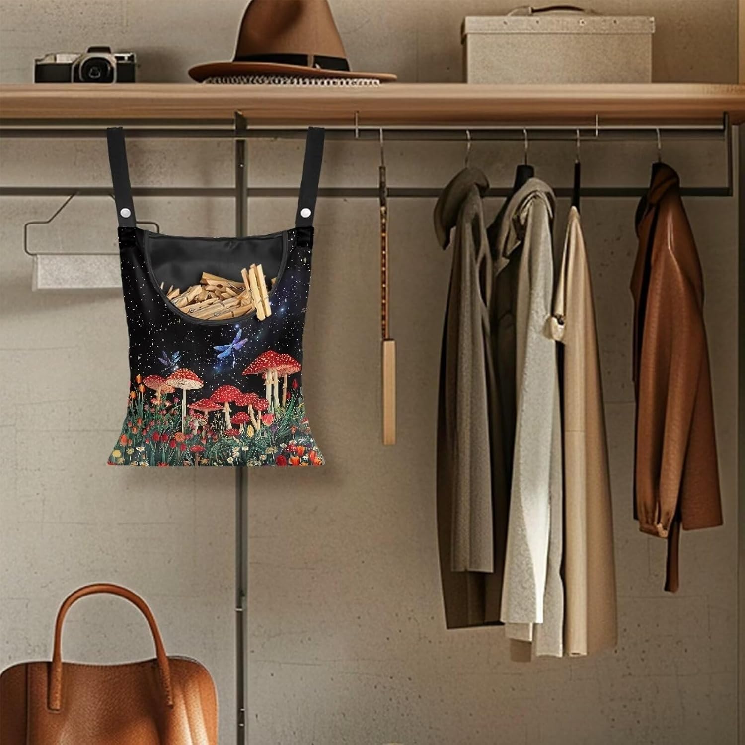 Red Mushroom Laundry Clothespin Bag - Adjustable Door-Hanging Storage Organizer with Rope for Home & Outdoor