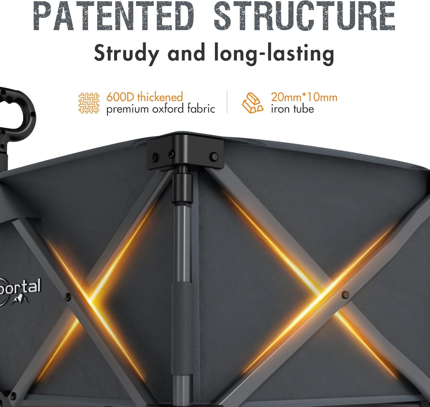 PORTAL Collapsible Wagon with Brakes, Heavy Duty Utility Cart with All-Terrain Wheels, Portable Folding Wagons for Camping, Beach, Garden, Shopping, and Groceries