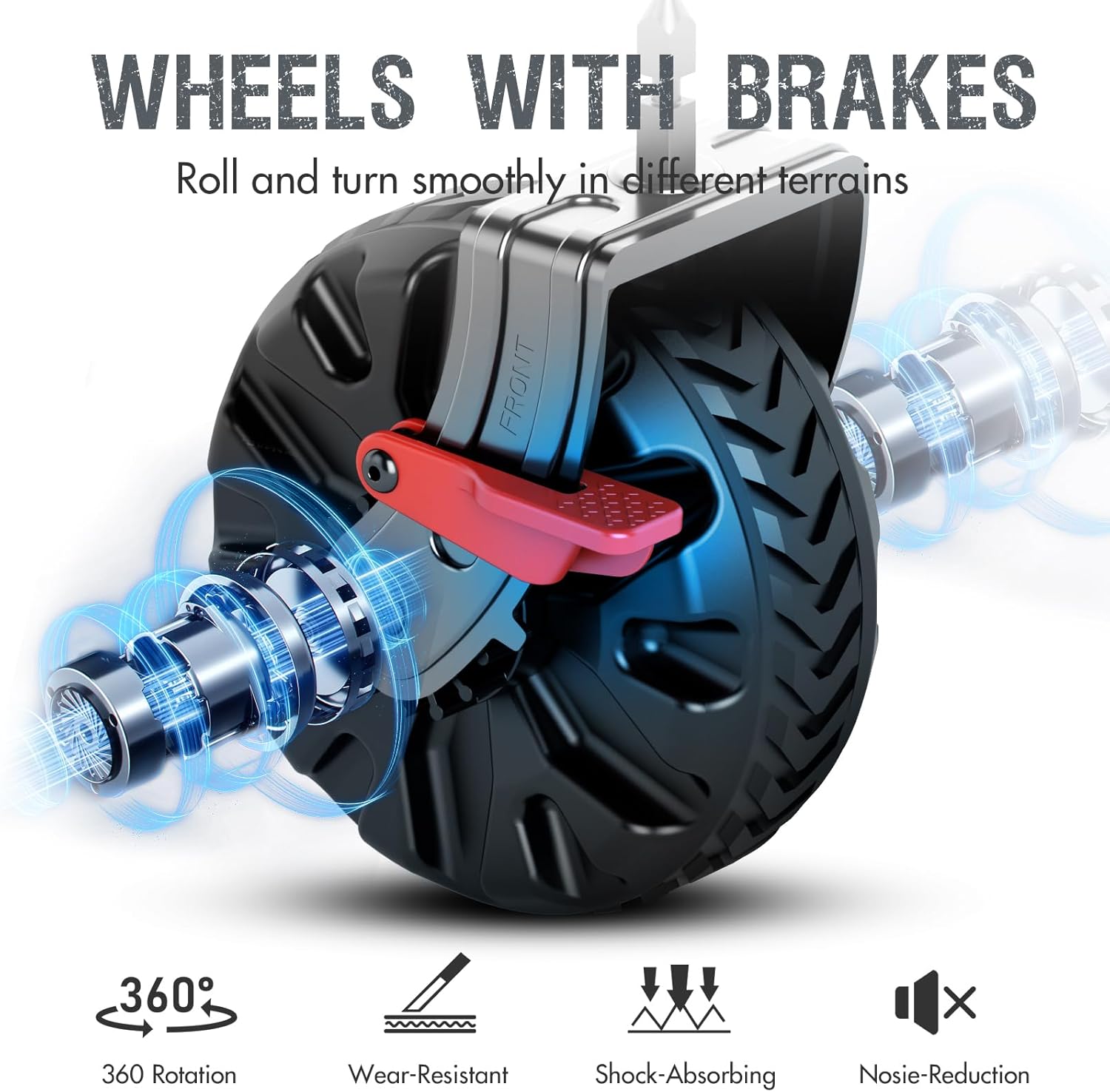 - All-Terrain Wheels: Equipped with large, shock-absorbing wheels, this foldable wagon rolls smoothly on sand, gravel, and grass. Built-in brakes also ensure it stays securely in place.