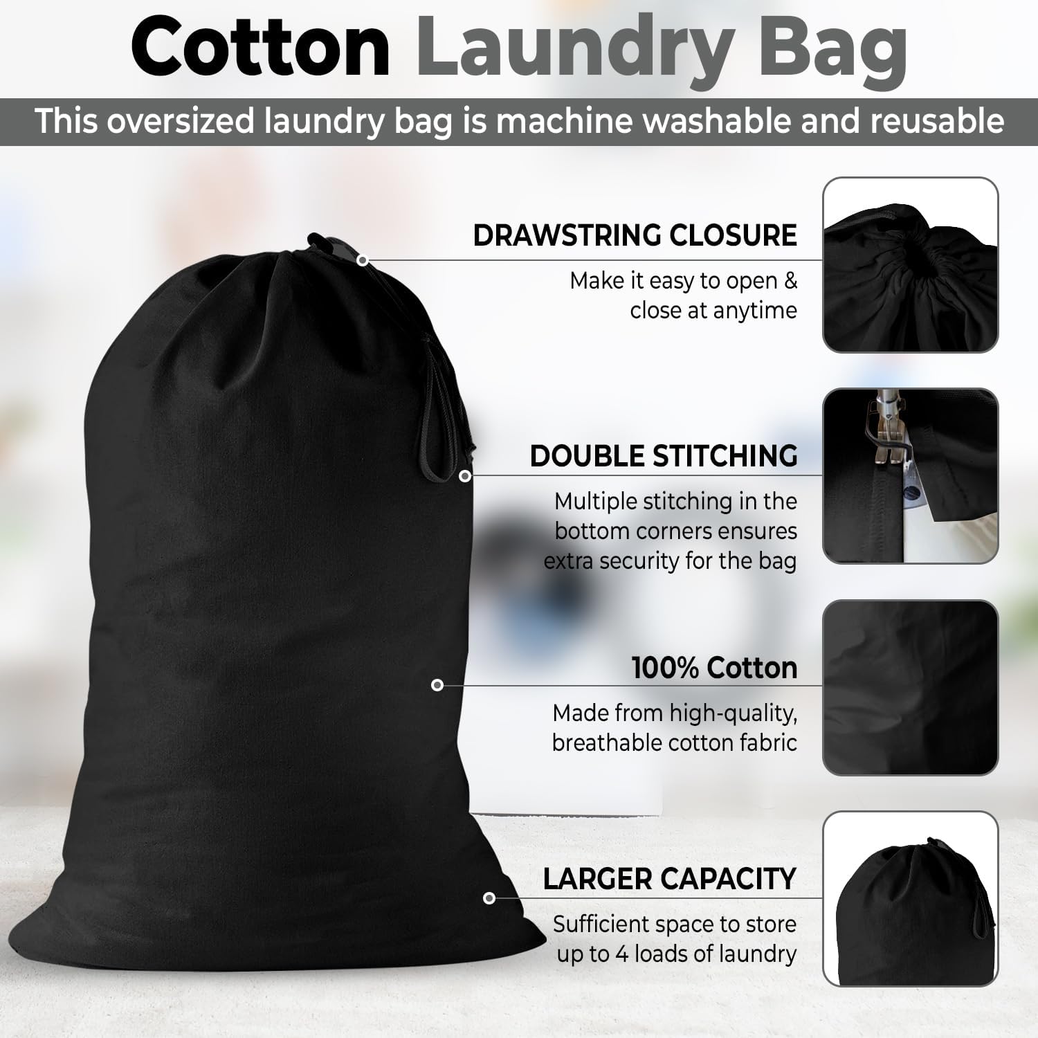 2 Pack - Extra Large Cotton Laundry Bag, Heavy Duty Large Laundry Bags 24 x 36 inch XL Drawstring Travel Organizer Bag Fit Hamper Basket Camp (Dark Grey, Pack of 2)
