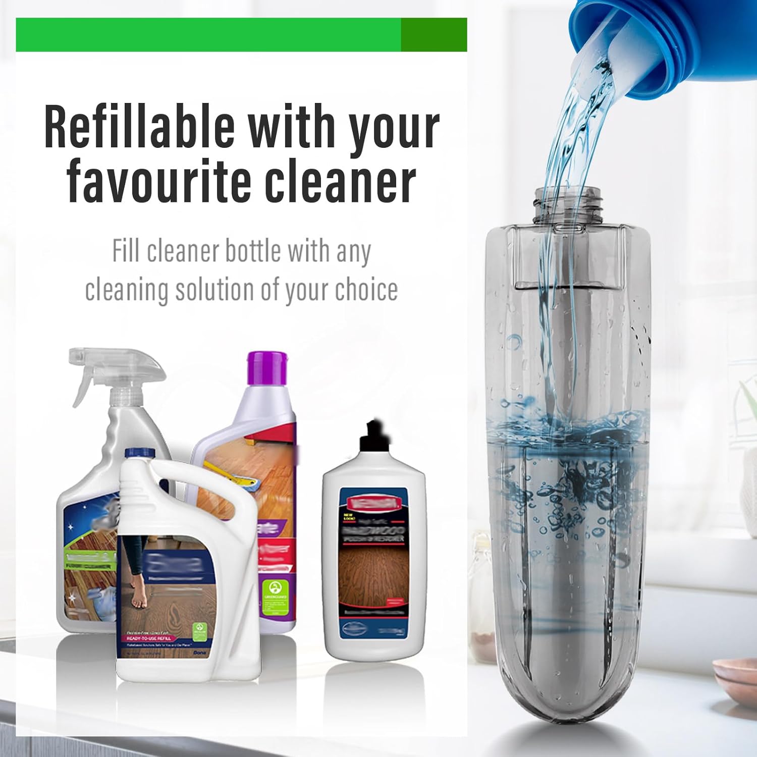 - ❤WARRANTY AND PACKAGE: 1 mop,1 refillable bottle(14 oz), 3 microfiber mop pads, and 1 scraper for heavy-duty scrubbing. If you have any questions, please contact us right away.