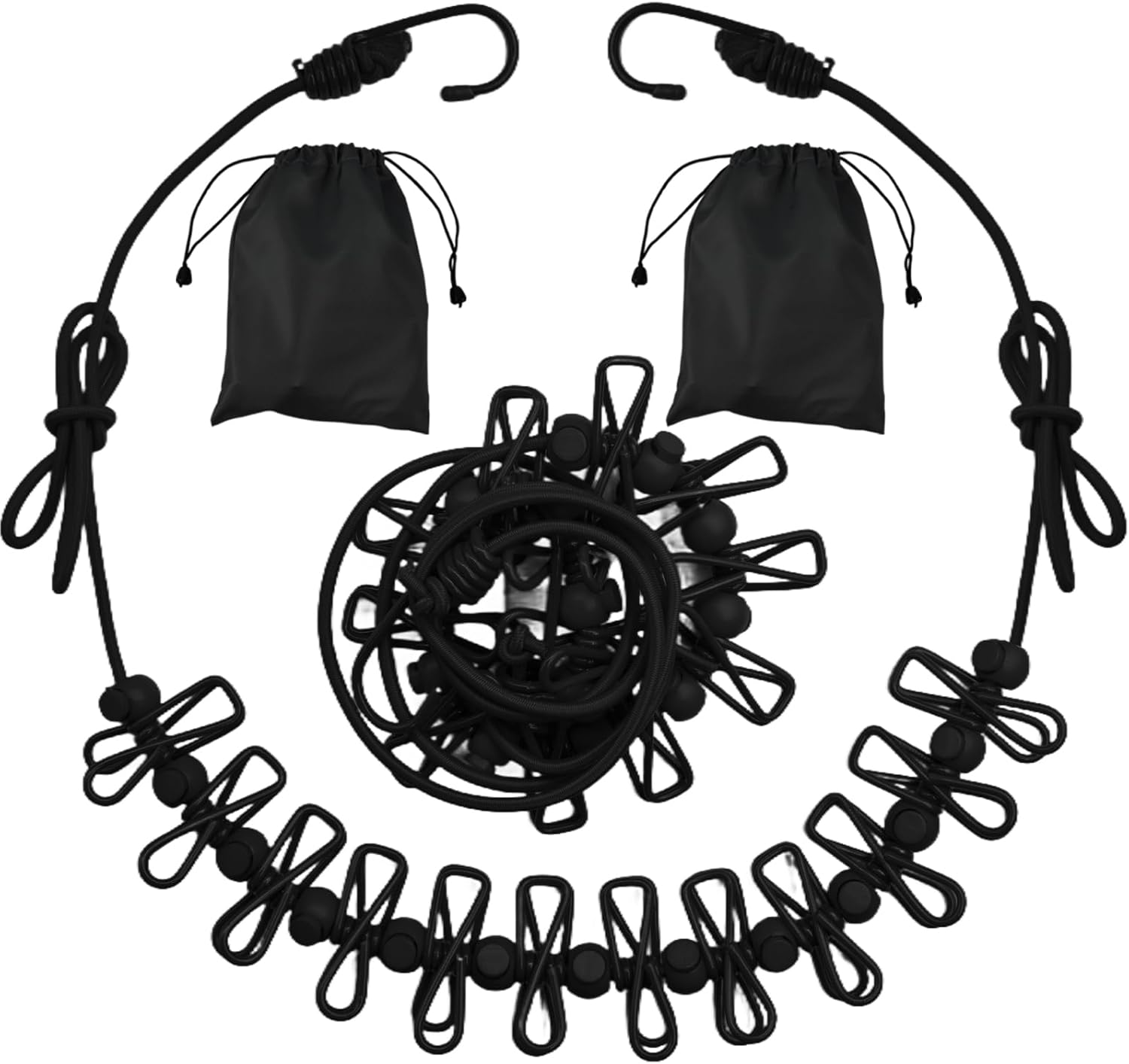 - [Innovative Design] The travel clothesline features 12 clothesline clamps and 13 windproof, non-slip clamps, all designed with a positioning bead. Our sturdy elastic rope supports heavy clothing more effectively than other clotheslines.