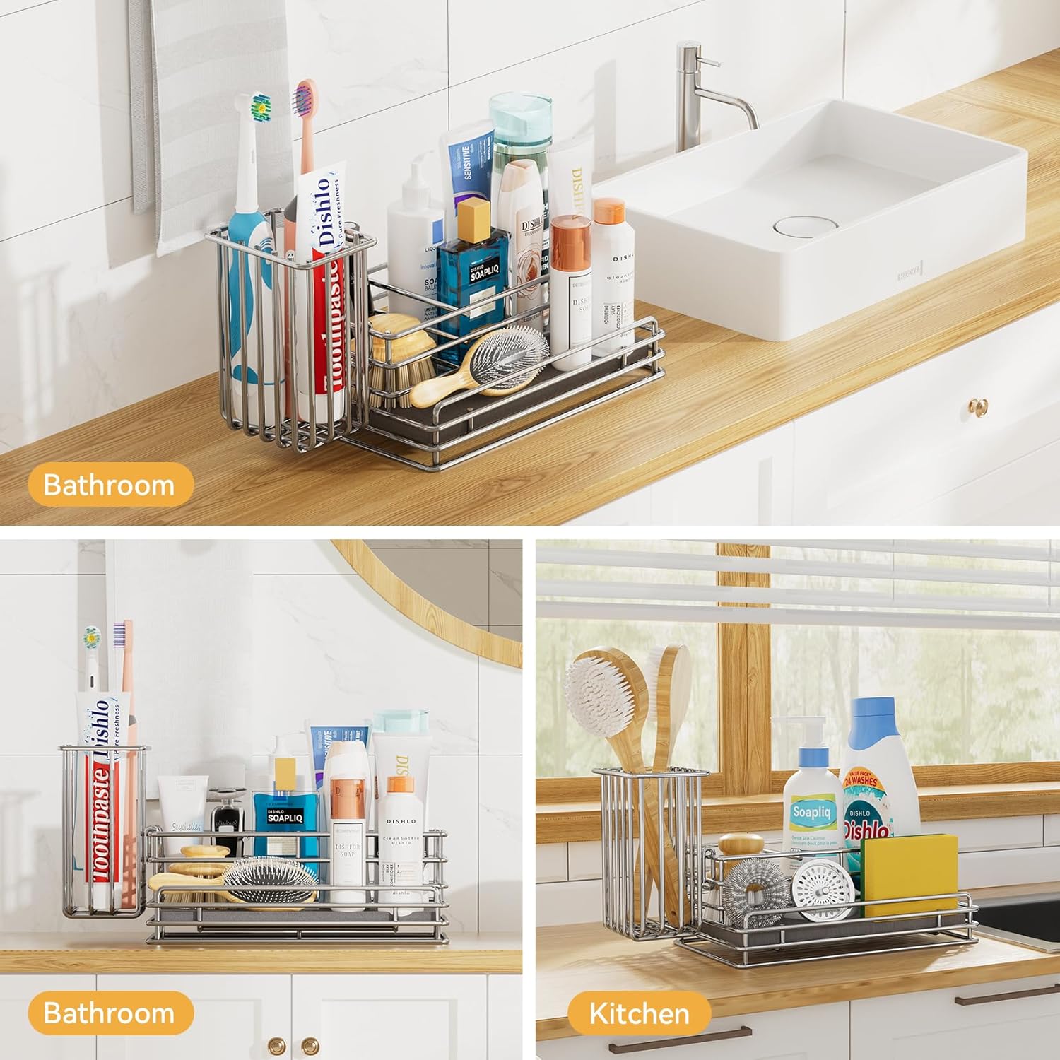 - Anti Slip Sink Rack: Our sink caddy will not slide and can be fixed for a long time without worrying about the sliding and stability of this kitchen sink storage rack