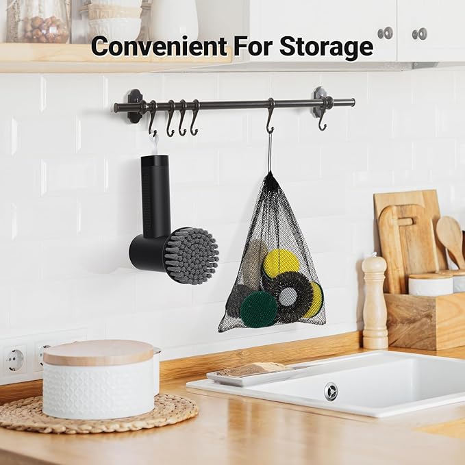 - Lightweight, Easy to Hang & Store: The power scrubber is lightweight and easy to maneuver, reducing the strain on my wrists, ergonomically designed, and comfortable to hold, making scrubbing a breeze. There is a lanyard on the handheld scrubber for hanging at any time, package included a mesh bag to store and dry the attachments after using and rinsing.