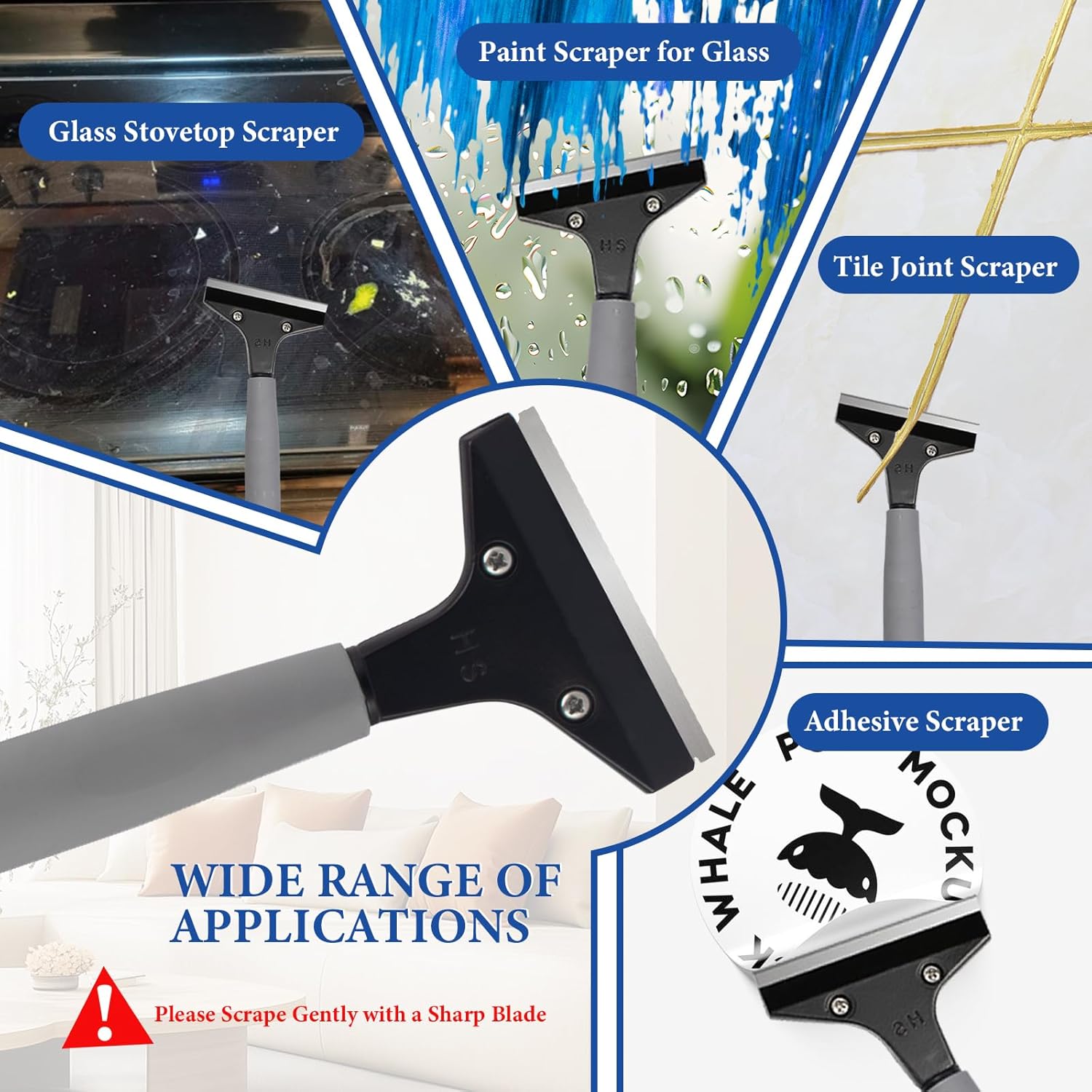 - 【Multi-Purpose Use】Our floor scraper can be used as razor blade scraper tool, adhesive scraper, paint scraper for glass, window razor blade scraper, tile joint scraper, metal paint scraper, wallpaper scraper tool, grill cleaning scraper, longer poop knife, tile scraper, etc. can be used in different scenarios to meet your different needs.