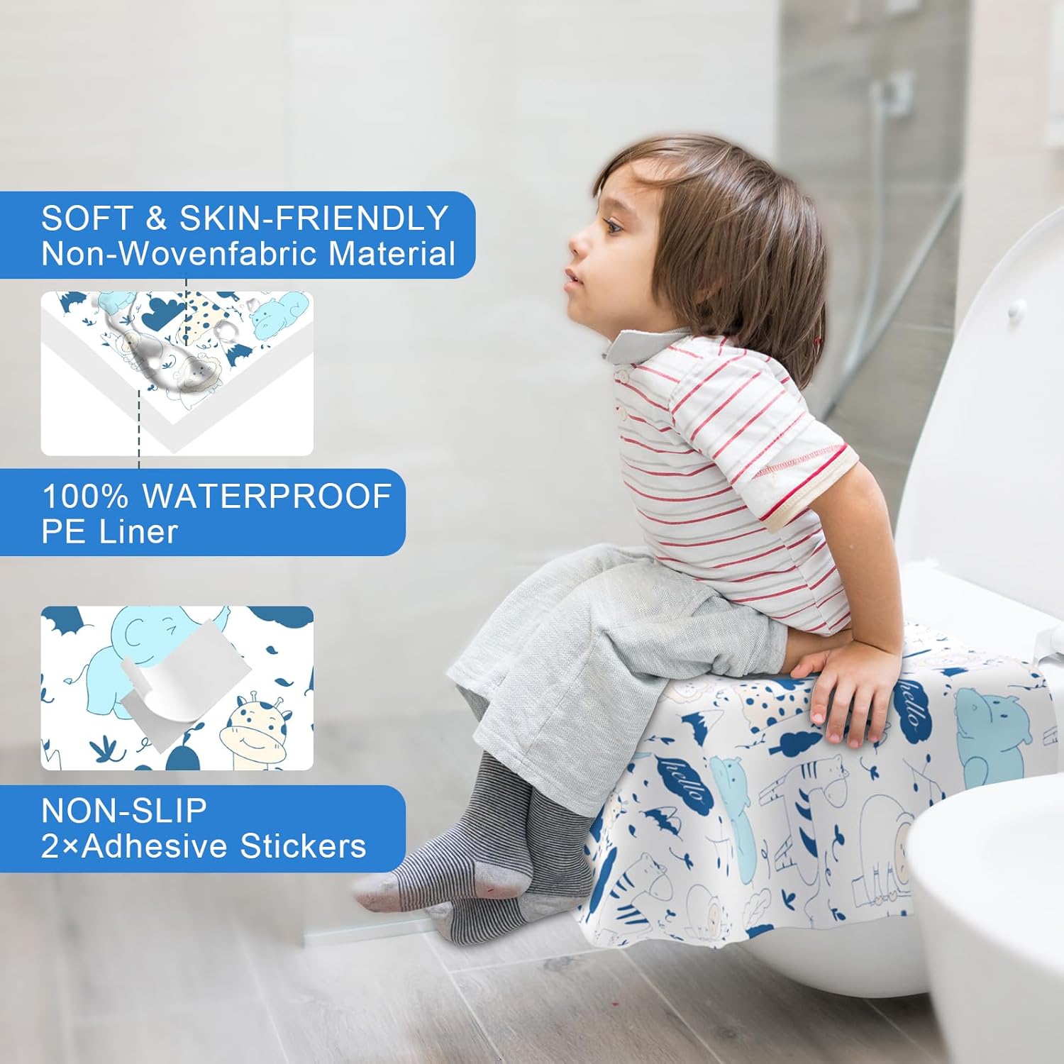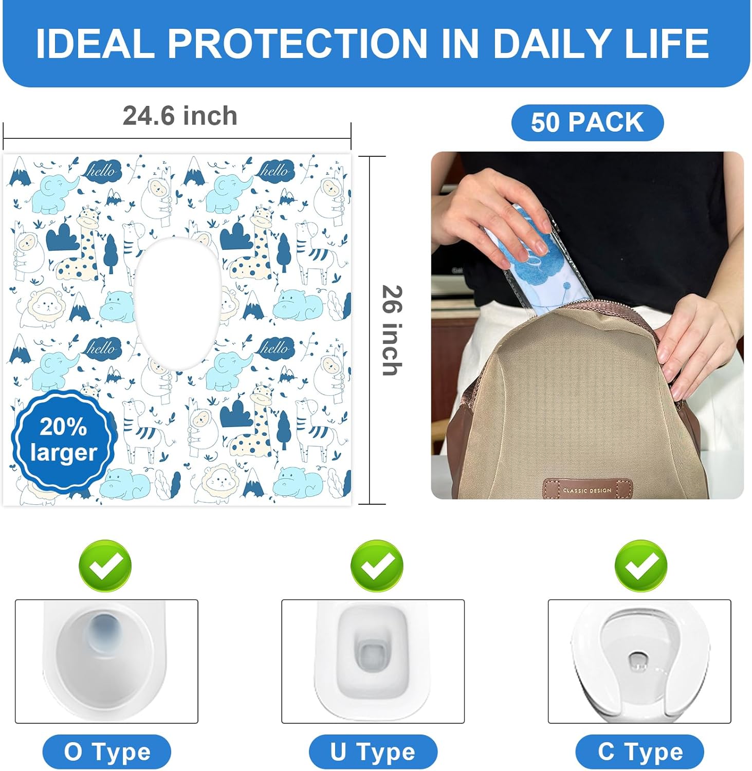 50 PCS Disposable Toilet Seat Covers, Extra Large Portable Potty Seat Covers for Toilet, Bathroom, Toddler & Kid Potty Training Seat Cover, Travel Essentials for Airplane, Trip-Animal
