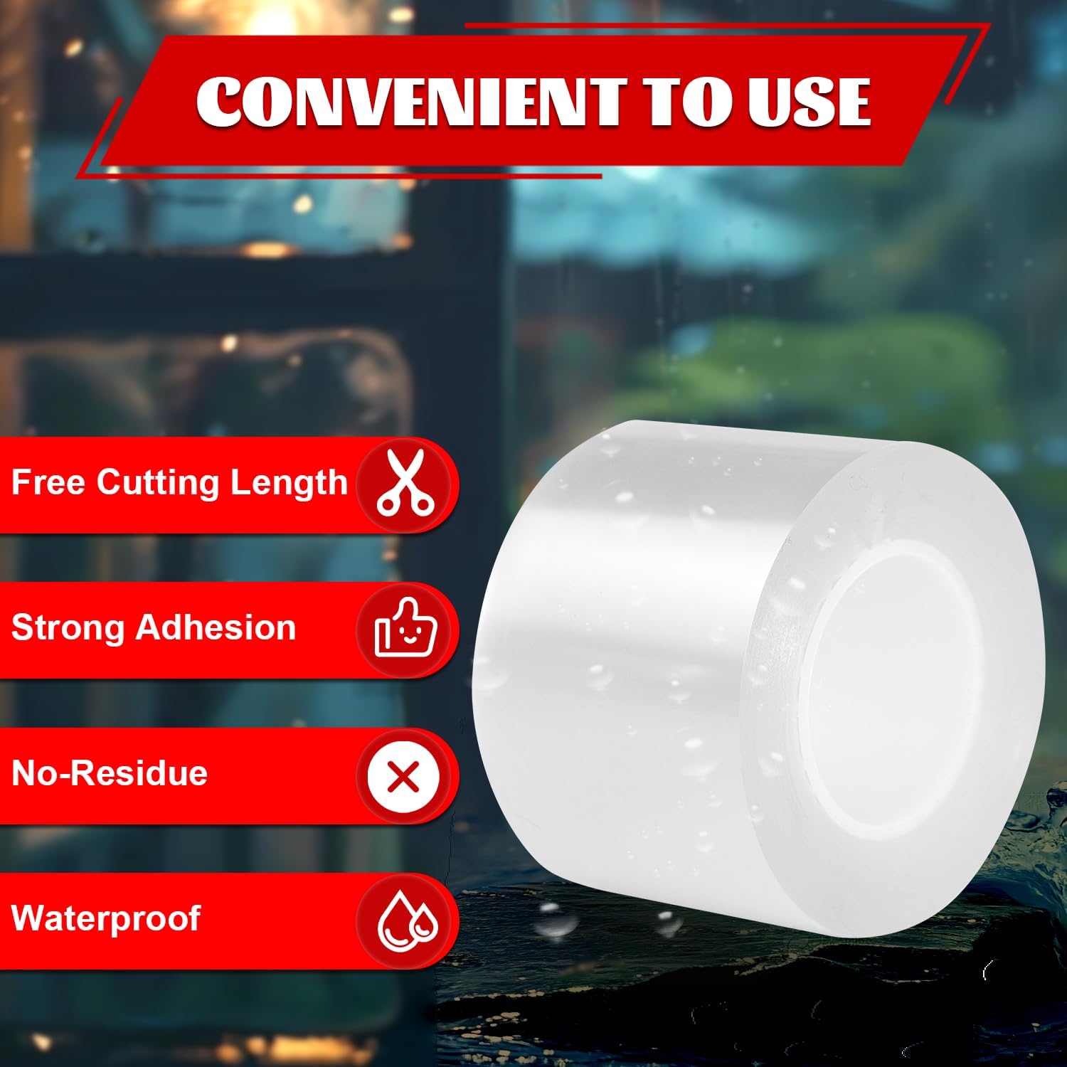 Transparent Window Weather Sealing Tape 2 Inch x 16.5 FT Weather Stripping Residue-Free Clear Window Insulation Caulk for Shower Glass Gaps and Clear Tape Doors Windows Windproof