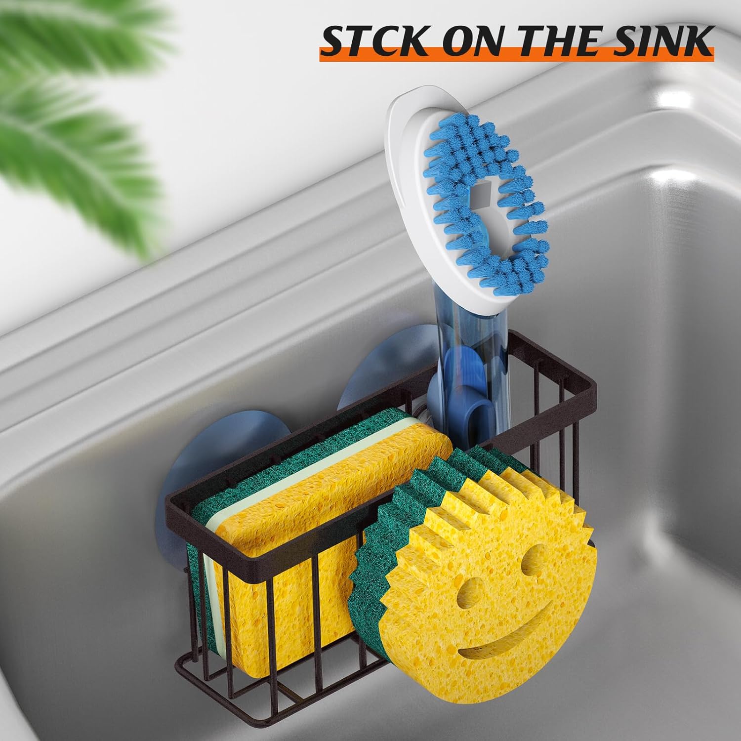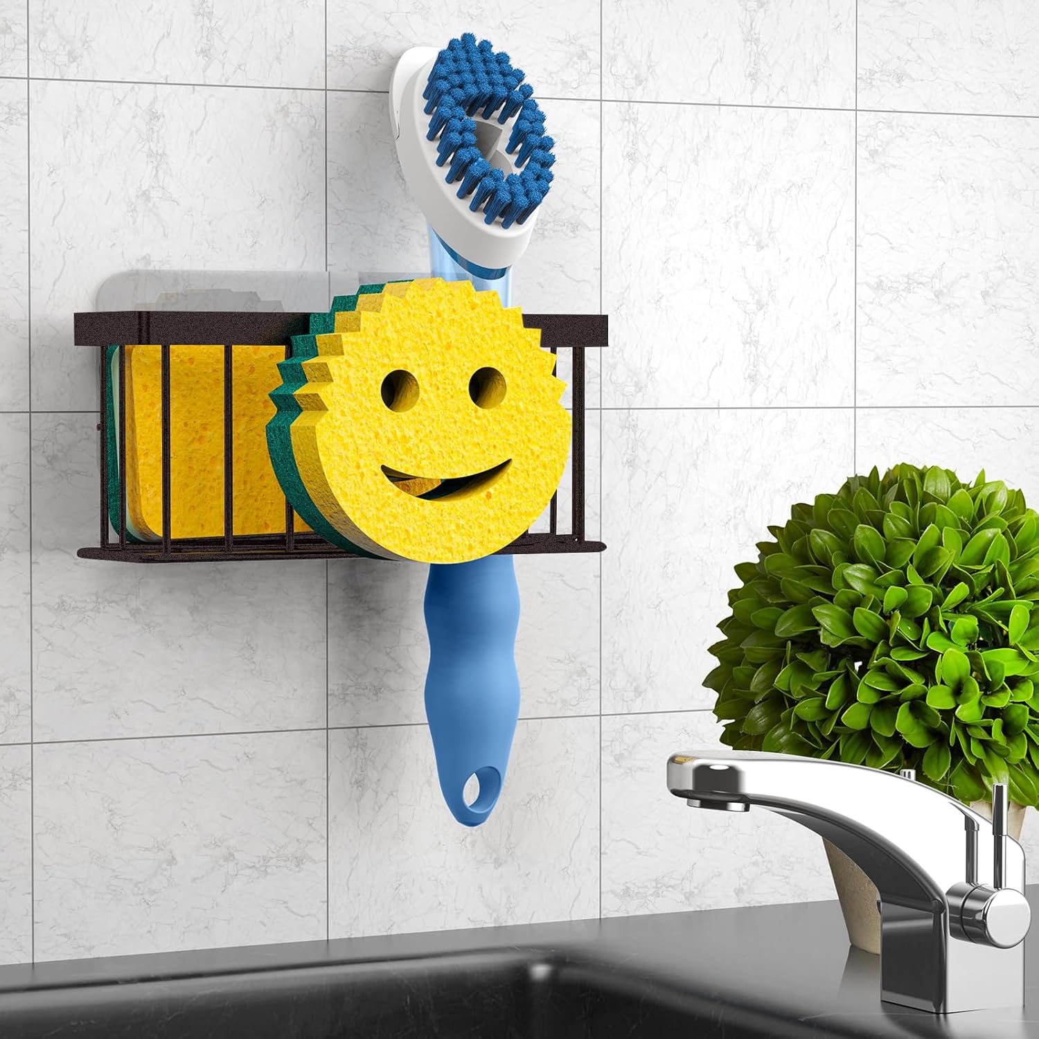 - UNIQUE EXTERIOR DESIGN: Compared to the original single-function version sponge holder, we specifically improved the style to increase space for holding the smiley face sponge and additional tools such as scrubber/dish brush/sink stopper etc