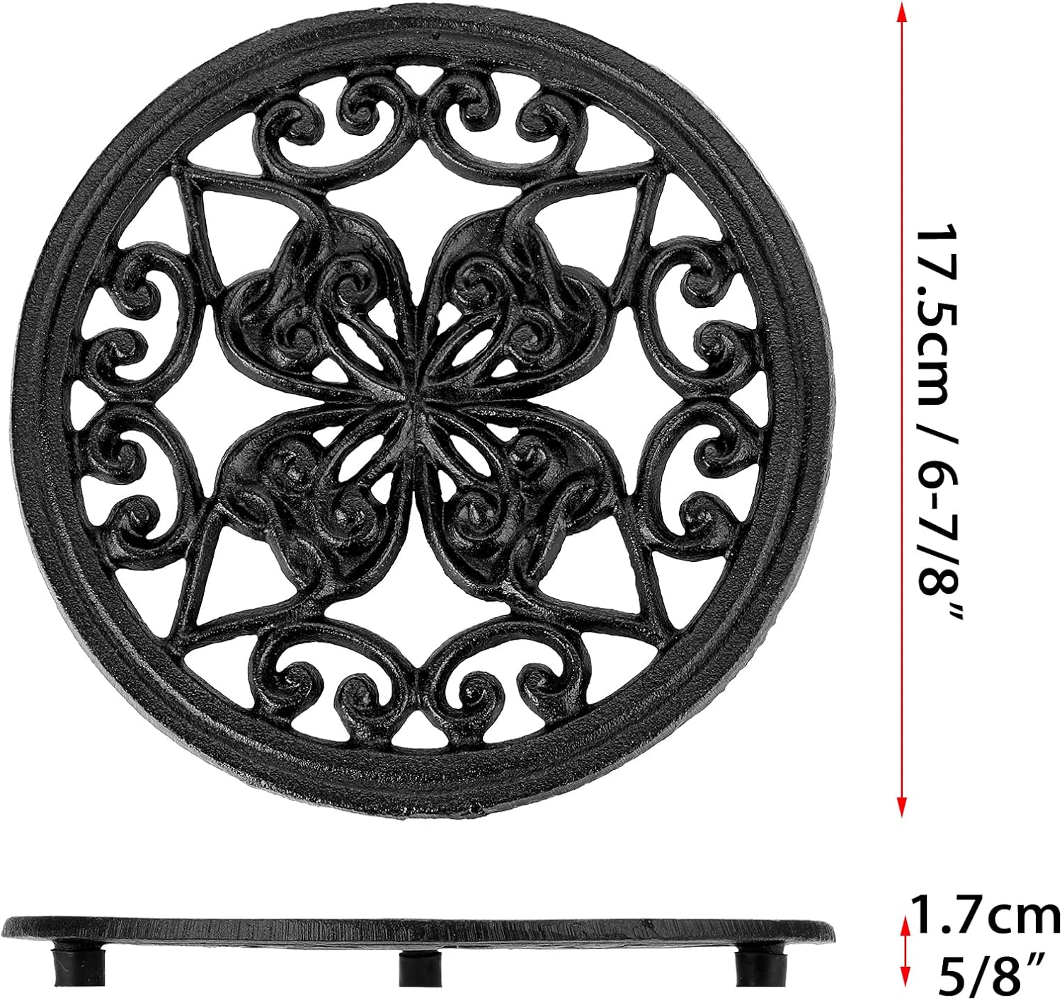 - Cast iron round trivet can be used as a hot plate pad, table mat, dish mat, drying mat, pitcher coaster, and even plant holder