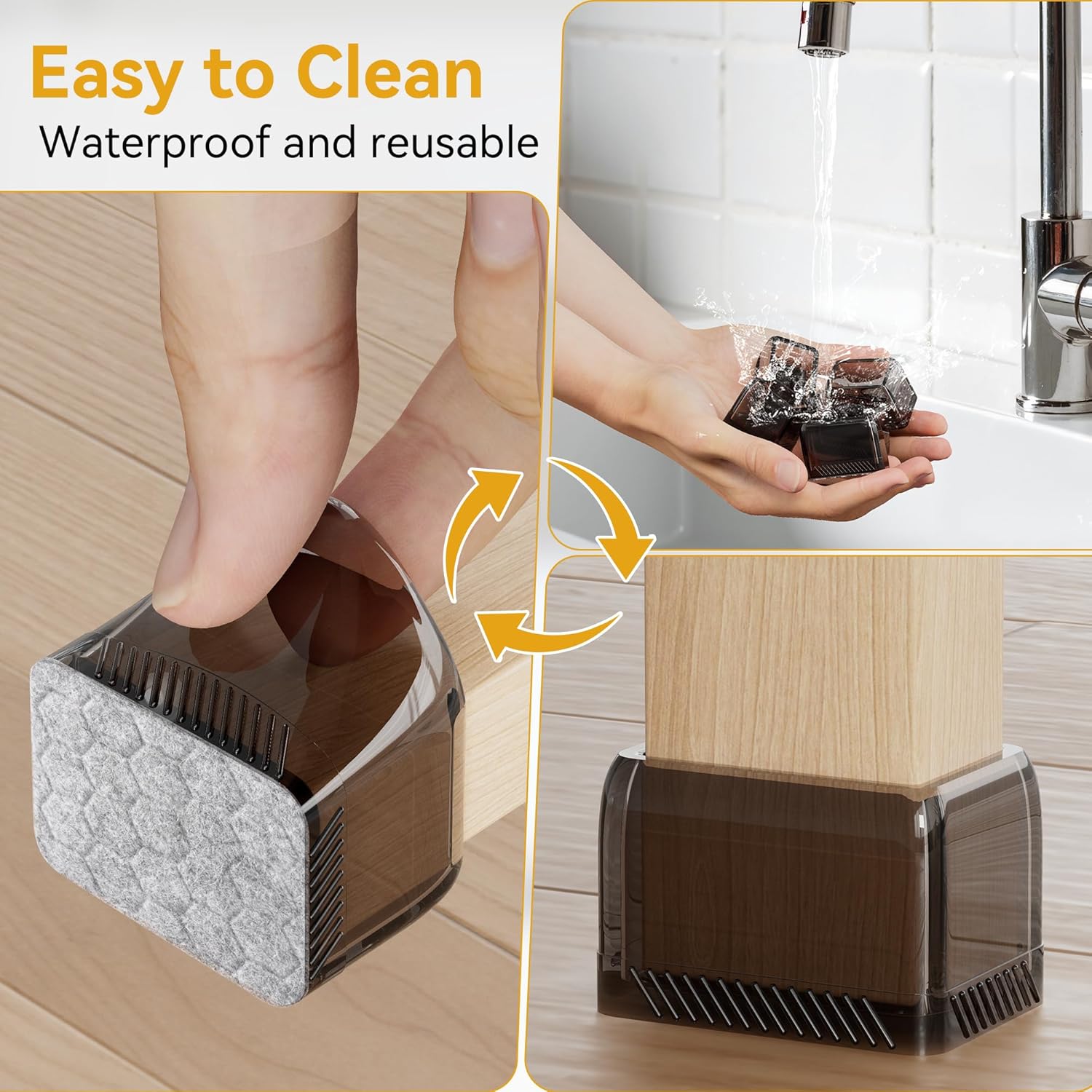 - ✅【Integrated Molding Process】Unlike traditional felt chair leg pads with glue or nails, we combine the felt and silicone into an integral part to prevent the felt pad from falling off during use. Additionally, the built-in bottom features a non-slip pattern to ensure that the chair sliders for wood floors stay securely in place without any risk of falling off.