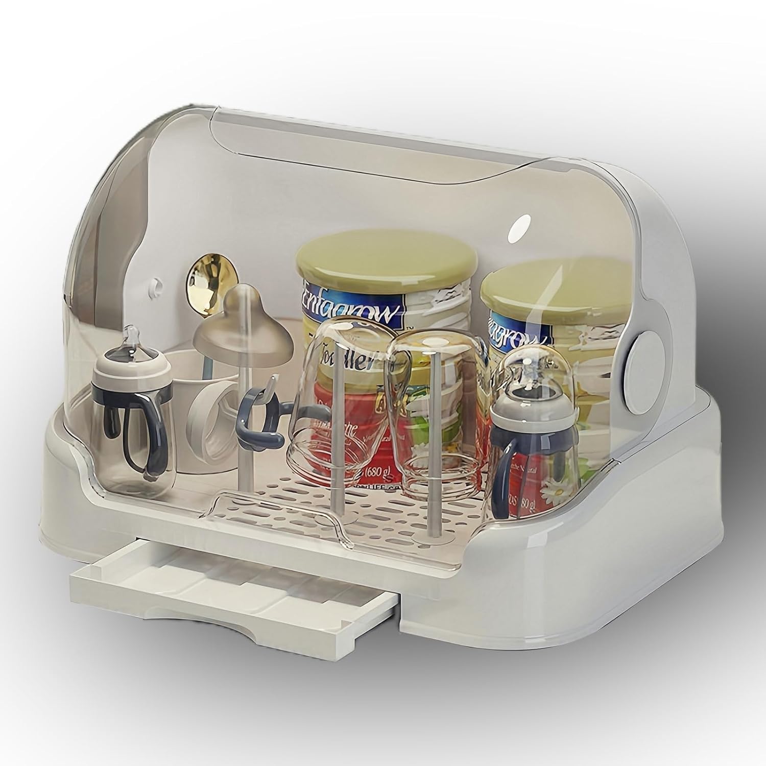 Zdolmy Baby Bottle Drying Rack Storage, Nursing Bottle Storage Box Organizer with Cover, Portable Kitchen Cabinet Organizer, Durable countertop Dryer (White)