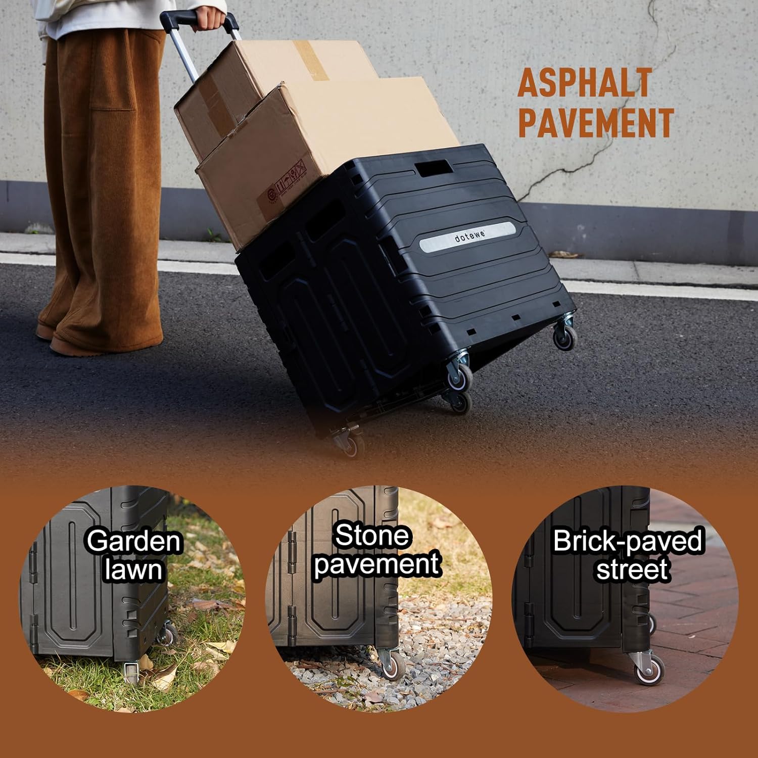 - Easy to Maneuver: The cart’s 360° swivel wheels and ergonomic handle make it easy to navigate through narrow aisles, crowded sidewalks, or uneven outdoor terrain.