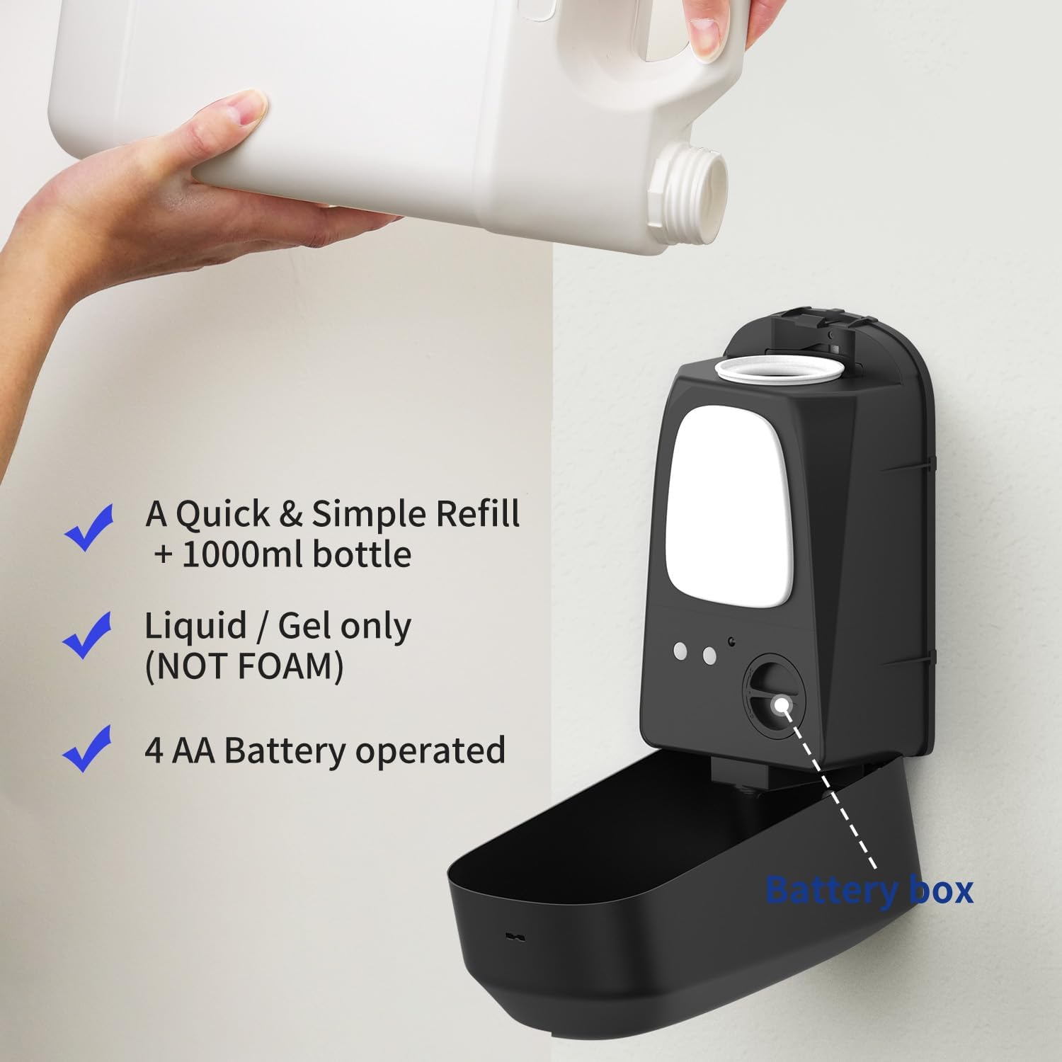 - Simple Setup: This dispenser requires 4 AA batteries, which can typically last for three months with regular use