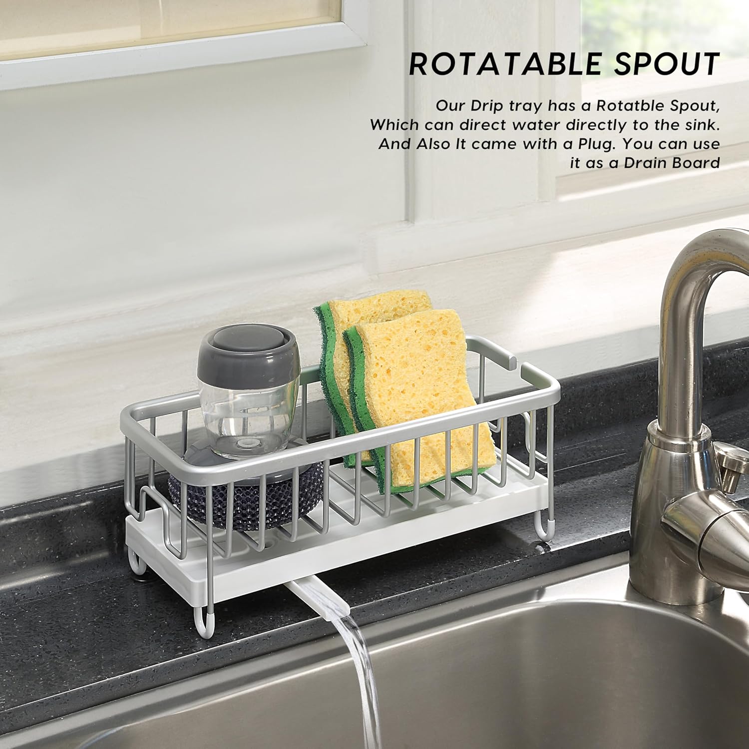 SunnyPoint Never Rust Aluminum Utensil, Sink Cleaning Tools Holder for Kitchen Sink with Drain Board; Dish Wand, Sponge, Soap Dispenser, Utensil Organizer Caddy (SIL)