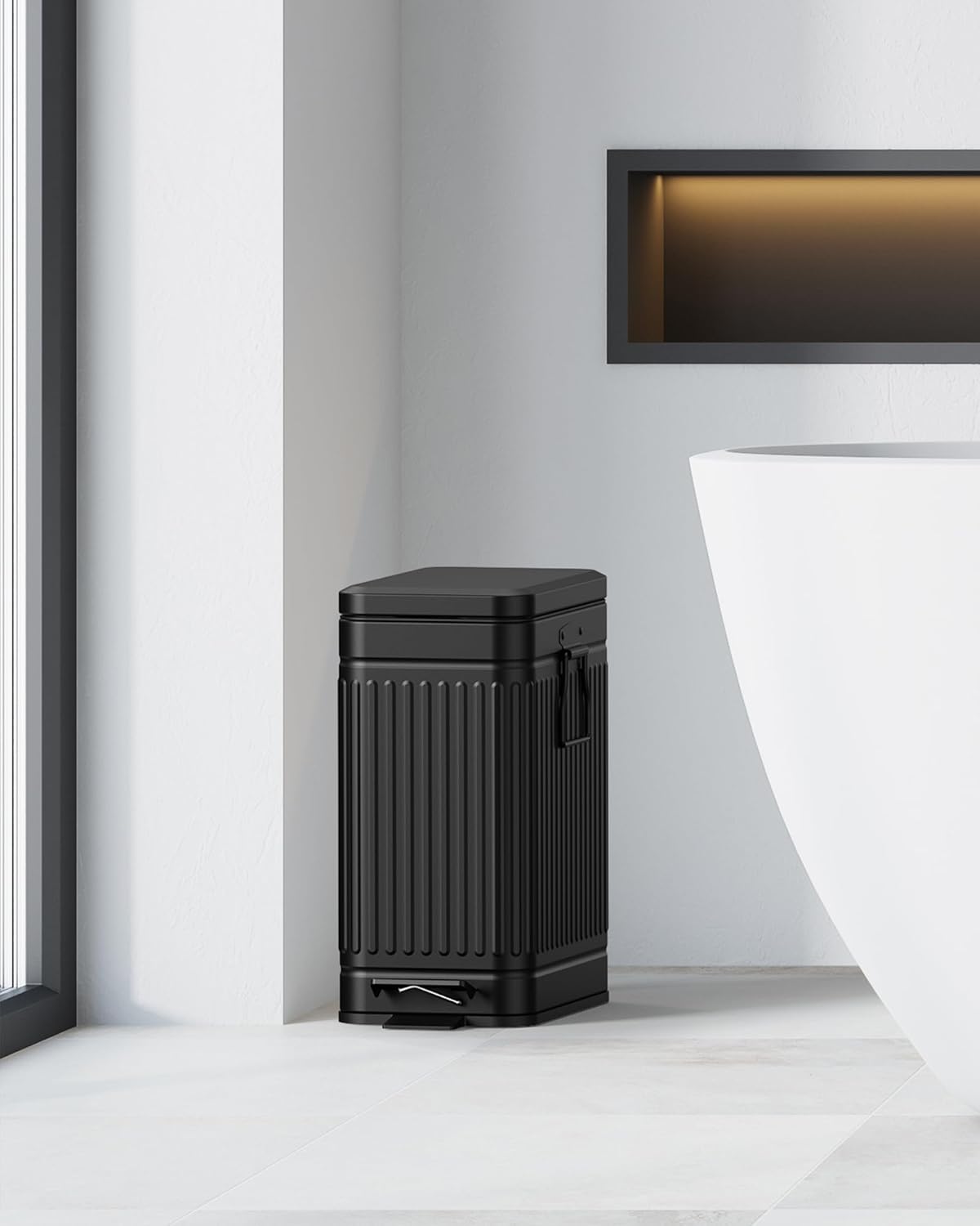 - High Quality: The trash cans are made from stainless steel, rust and fingerprint-proof; The matte embossed finish results in a stylish and modern design for bathroom, bedroom, office, toilet, dorm