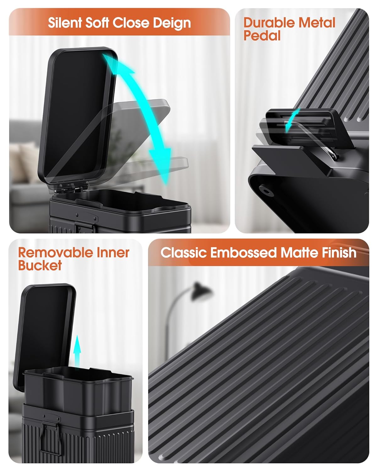- Removable Inner Bucket: Our trash cans feature a removable inner bucket that makes trash disposal easy; There is a carry handle on the back of the slim trash can to move it easier