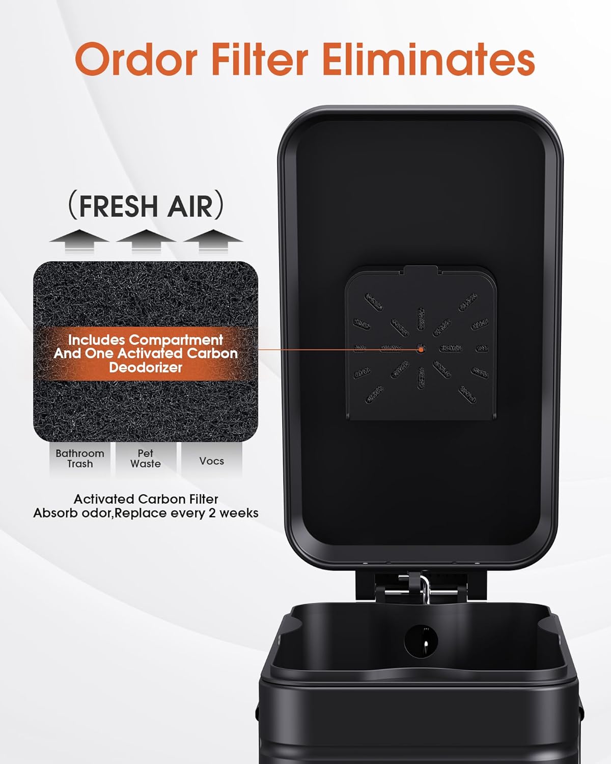- Odor-Free: The Odor Control trash can included compartment and activated carbon deodorizer absorbs waste odors, 360° sealed space prevents odors from escaping from the can, making your space cleaner
