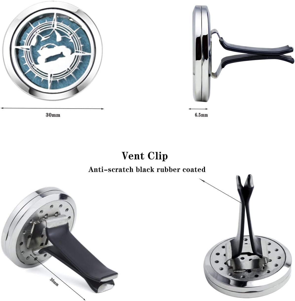 - 【Material 】High quality 316L stainless steel 30mm car diffuser vent clip, solid and smooth, anti-corrosion, easy to clean, we pair our diffuser car vent with reusable 10 color refill pads. Complete with a solid back and two magnets for a secure close, you’ll never have to worry about getting essential Oil all over your car.