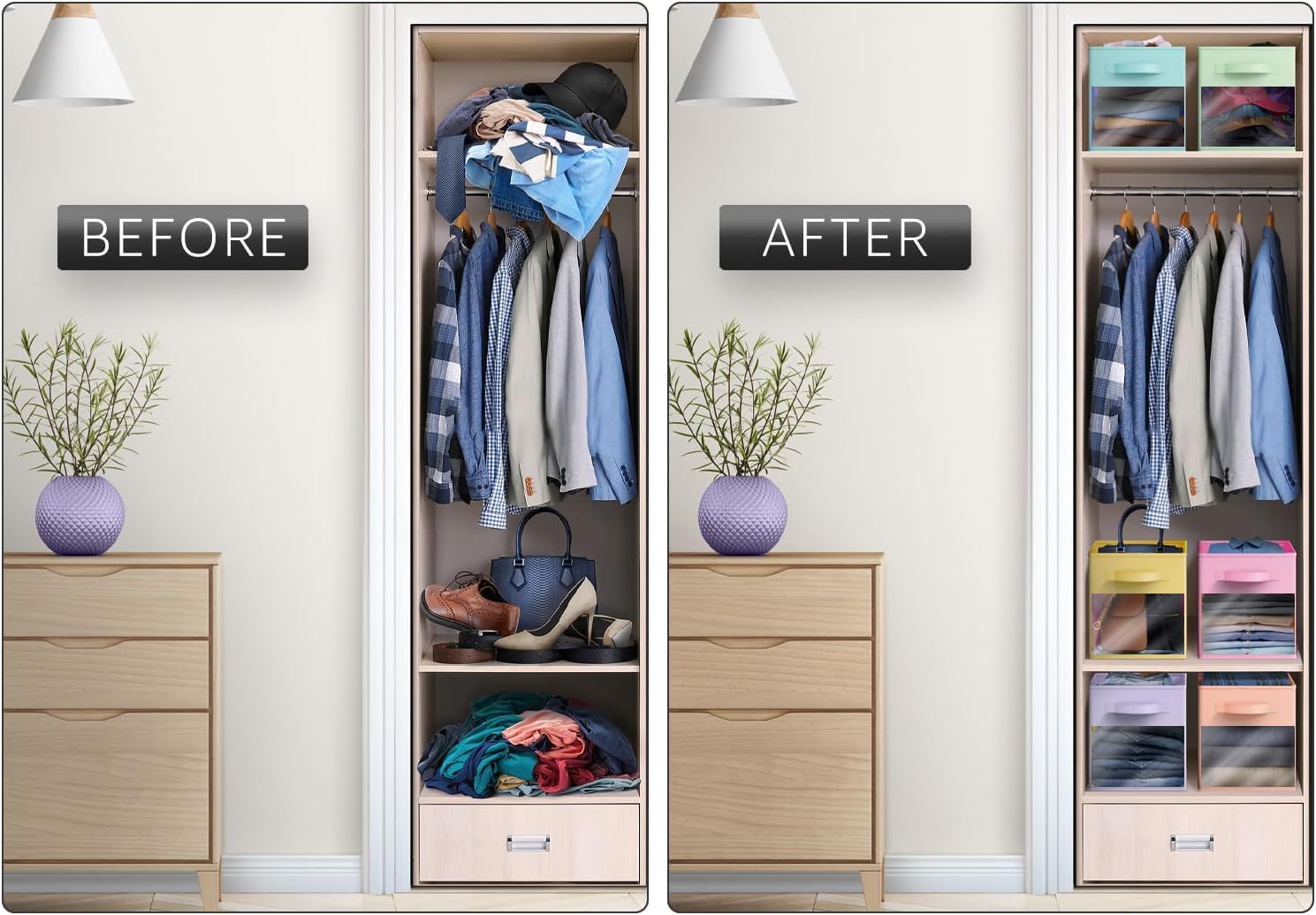 - Fabric Bins for Storage and Organization: Our shelf basket set is excellent for organizing, games, art & craft supplies, linens, toys, clothing, shoes, seasonal items, and more.