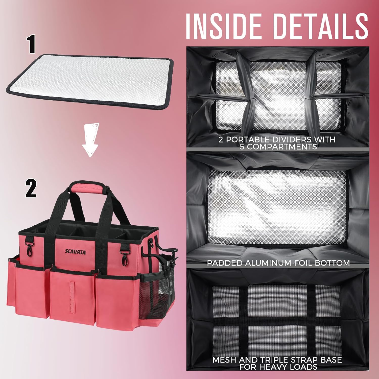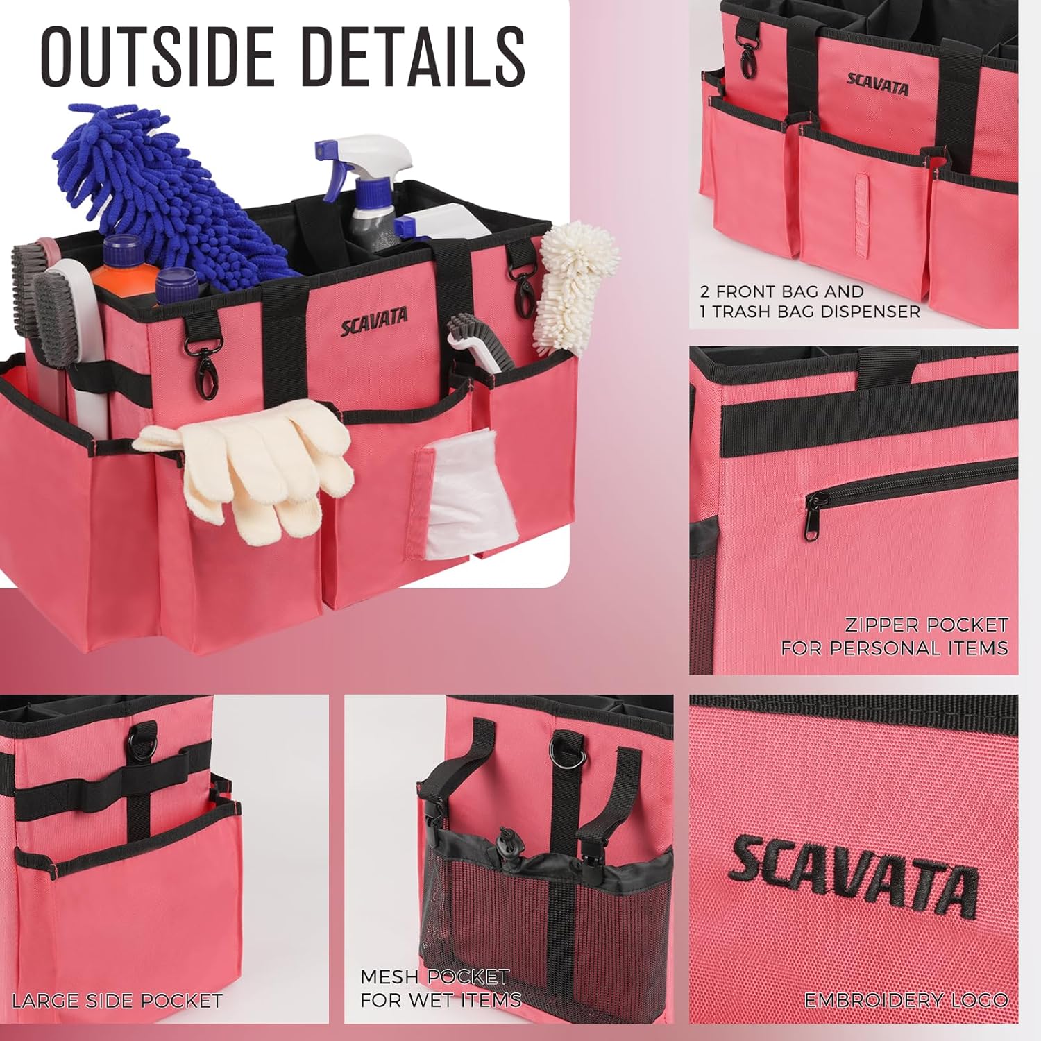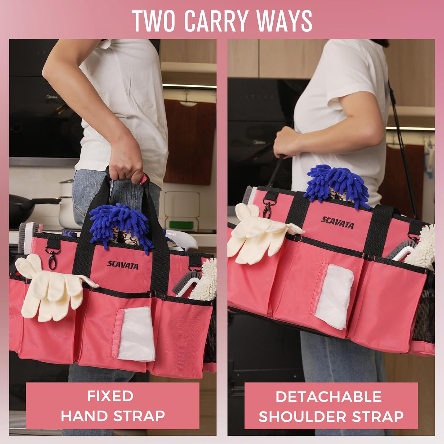Wearable Cleaning Caddy Bag, Cleaning Caddy Supplies Organizer with Handle & Shoulder Straps for Housekeepers, Under Sink & Car Cleaning Tool Organizers with 4 Foldable Divider (RoseRed)