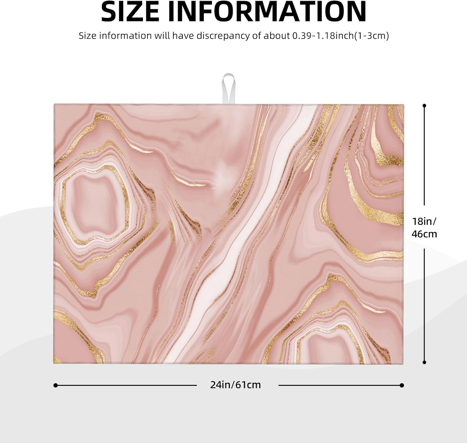 Pink Golden Dish Drying Mat for Kitchen Counter Absorbent Reversible Rose Pink Modern Drying Pad Dark Kitchen Decor Marble Dish Drainer Rack Mats 18"x24"